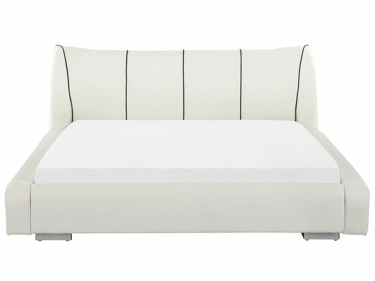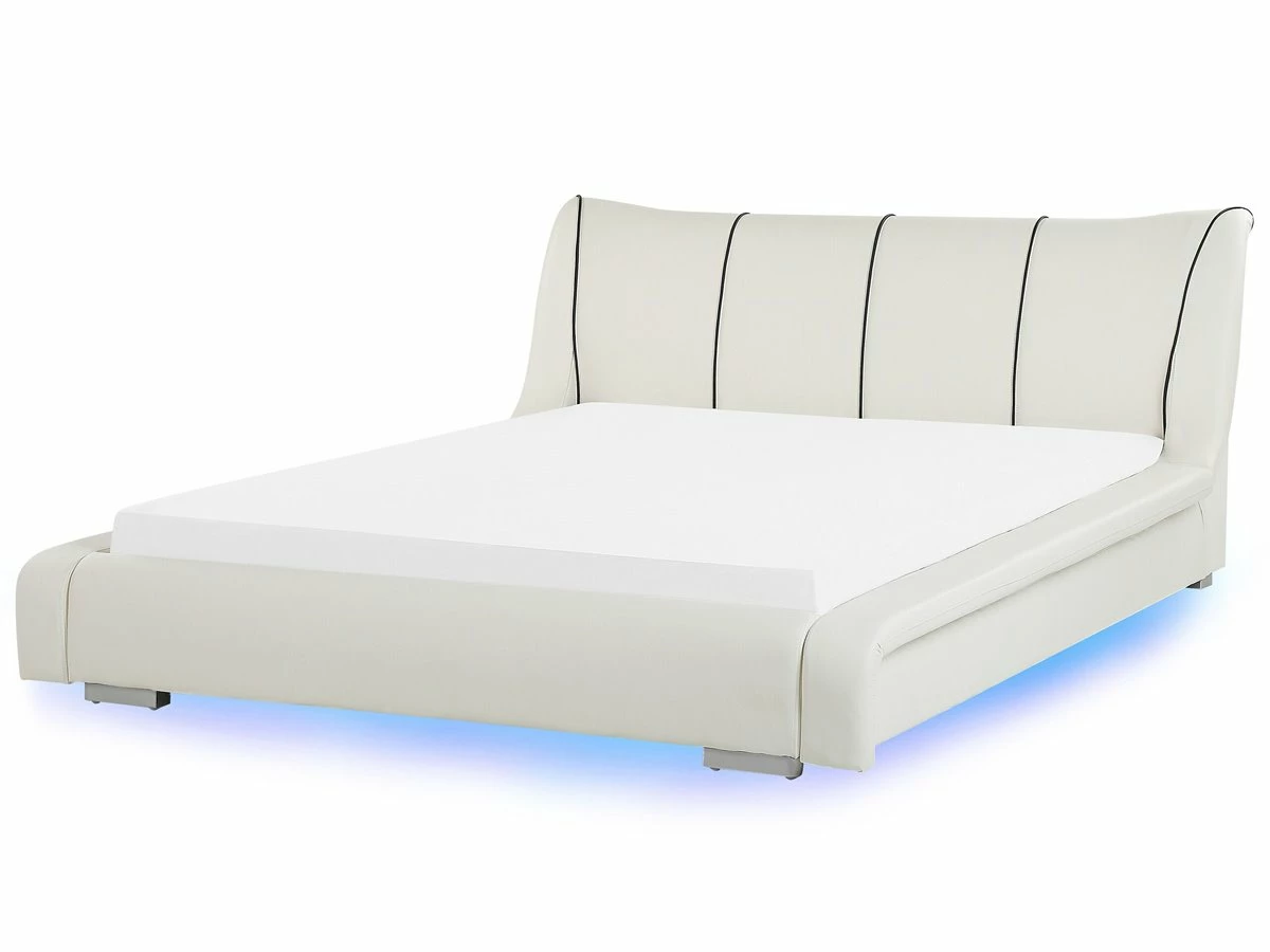 Cama de diseño moderno. Añade comodidad a tu dormitorio con esta cama con somier. Está fabricada a partir de piel de alta calidad. Las líneas suaves y el cabecero acolchado proporcionan el máximo confort. Las patas de tamaño reducido combinan bien con el diseño general. Incluye iluminación LED. Detalles: Tipo de Producto: Cama doble LED Estilo: Glamour Color: Blanco Color LED: Multicolor Color Temperatura LED: Neutral Tonalidad: Blanco crema Tipo de material: Piel genuina Material principal: Piel Material adicional: Poliéster Parte posterior tapizada: Sí Acabado: Mate Flujo luminoso LED: 200 Tipo de LED: SMD 5050 LED: Sí Almacenamiento: No Dimensiones: Dimensiones del reposacabezas: 208×97 Ancho: 208 cm Longitud: 237 cm Altura: 97 cm Superficie para dormir: 180×200 cm Peso: 80 kg Capacidad de peso: 250 kg La oferta incluye: 1 x Mando a distancia, 1 x Estructura de cama, 1 x Somier (48 listones flexibles, 1 x Tira LED (500 cm, 1 x Adaptador, No incluye: colchón y ropa de cama Ventajas: Distribución uniforme del peso corporal, Espaciosa superficie para dormir, Llamativa iluminación LED que crea un ambiente agradable, Diseño moderno, Fabricación sólida y precisa, Mantenimiento sencillo Información de montaje: Requiere montaje completo. 45-60 min. Información adicional: La altura del colchón visible en la imagen es de 20 cm. Tenga en cuenta que la imagen con la luz LED es solo ilustrativa. La tira LED es un elemento adicional que debe colocarse a lo largo del borde de la cama, por lo que el resultado final puede verse diferente. El cabecero está tapizado en piel natural, sin embargo los lados y otros elementos están tapizados en piel sintética. Consejos de mantenimiento: Piel: 1.Trate la superficie con un protector de cuero antes de la temporada de invierno. No use quitamanchas, trementina, betún o cualquier tipo de grasa. Los limpiadores abrasivos pueden dejar manchas u oscurecer el cuero 2.Una vez a la semana, limpie con un paño de algodón; una vez al mes limpie con agua y luego seque 3.No use limpiadores abrasivos ya que pueden dañar el material. Evite la fricción fuerte ya que podría dejar rasguños en la superficie 4.El calor y la luz solar hacen que el cuero se seque y pierda color. Manténgalo alejado de la luz solar directa o del radiador 5.Las manchas pequeñas se pueden eliminar con un borrador no teñido. Use un limpiador suave en manchas difíciles. Para las manchas de grasa use vinagre.