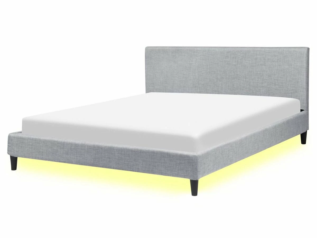 Cama de estilo minimalista. Esta cama con somier combina bien con cualquier dormitorio de estilo moderno o minimalista. Está fabricada a partir de tela de poliéster de alta calidad. Las patas cónicas aportan un toque nórdico al diseño. La funda para la estructura y el cabecero es extraíble. Incluye luces LED de varios colores. Detalles: Tipo de Producto: Cama doble LED Estilo: Moderno Color: Negro Color Temperatura LED: Blanco cálido Tipo de material: Tejido Material principal: Poliéster Material adicional: Madera de pino Composición del Material: 100% Poliéster Parte posterior tapizada: No Flujo luminoso LED: 66 Tipo de LED: SMD 3528 LED: Sí Almacenamiento: No Dimensiones: Dimensiones del reposacabezas: 169×74 Ancho: 170 cm Longitud: 214 cm Altura: 87 cm Superficie para dormir: 160×200 cm Peso: 36 kg Capacidad de peso: 220 kg La oferta incluye: 1 x Estructura de cama, 1 x Somier (28 listones flexibles, 2 x Tiras LED (120 cm cada una, 1 x Cubre somier, No incluye: colchón y ropa de cama Ventajas: La base de listones que absorbe los golpes proporciona un soporte perfecto, Cubierta de repuesto para estructura de la cama disponible, Espaciosa superficie para dormir, Llamativa iluminación LED que crea un ambiente agradable, Combina con todo tipo de decoración, La iluminación LED se enciende solo en la oscuridad, cuando se detecta movimiento, Base sólida y estable Información de montaje: Requiere montaje parcial. 20-40 min. Información adicional: La altura del colchón visible en la imagen es de 20 cm. Tenga en cuenta que la imagen con la luz LED es solo ilustrativa. La tira LED es un elemento adicional que debe colocarse a lo largo del borde de la cama, por lo que el resultado final puede verse diferente. Consejos de mantenimiento: Poliéster: 1.Aspire con un accesorio adecuado 2.Limpiar con champú seco y una esponja húmeda o un limpiador suave. Madera de pino: 1.Los muebles con acabado de aceite deben engrasarse una vez al año, 2.Seque inmediatamente después de limpiar. para evitar que se acumule agua en los muebles 3.Limpie con un limpiador y un paño suave en la dirección del grano.