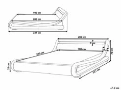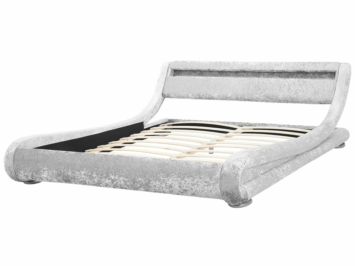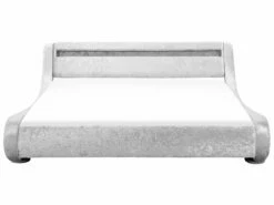 Cama de diseño glamuroso. Añade un toque de glamour a tu dormitorio con esta cama con somier. Está fabricada a partir de terciopelo de alta calidad y suave al tacto. El cabecero de estilo elegante llama poderosamente la atención. El panel LED, situado en el cabecero, viene con un control remoto. Selecciona entre los distintos colores o modos de iluminación disponibles. Detalles: Tipo de Producto: Cama doble LED Estilo: Glamour Color: Plateado Tipo de material: Poliéster aterciopelado Material principal: Terciopelo Material adicional: Material sintético Composición del Material: 100% Poliéster Parte posterior tapizada: No LED: Sí Almacenamiento: No Dimensiones: Dimensiones del reposacabezas: 200×35 Ancho: 200 cm Longitud: 221 cm Altura: 70 cm Superficie para dormir: 180×200 cm Peso: 50 kg Capacidad de peso: 200 kg La oferta incluye: 1 x Estructura de cama, 1 x Somier (24 listones flexibles, No incluye: colchón y ropa de cama Ventajas: La base de listones que absorbe los golpes proporciona un soporte perfecto, Espaciosa superficie para dormir, Diseño moderno, Construcción muy estable, Luces LED integradas, Completamente tapizado Información de montaje: Requiere montaje completo. 45-60 min. Información adicional: La altura del colchón visible en la imagen es de 20 cm. Tenga en cuenta que la imagen con la luz LED es solo ilustrativa. La tira LED es un elemento adicional que debe colocarse a lo largo del borde de la cama, por lo que el resultado final puede verse diferente. Consejos de mantenimiento: Terciopelo: 1.Aspire con un accesorio adecuado 2.Limpiar con champú seco y una esponja húmeda o un limpiador suave.