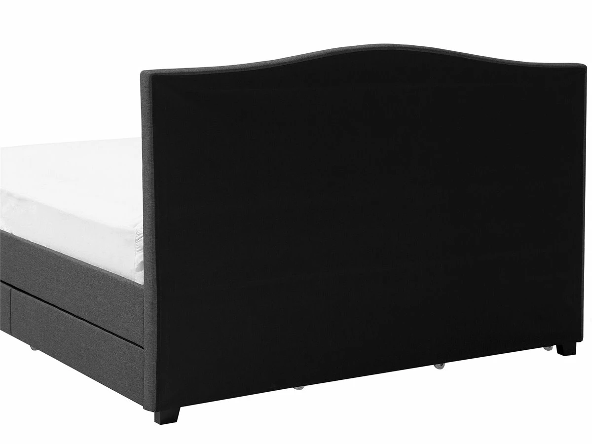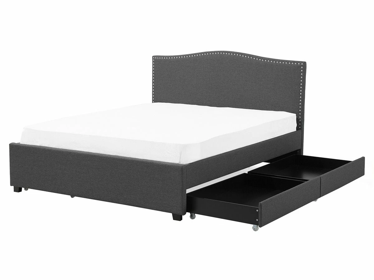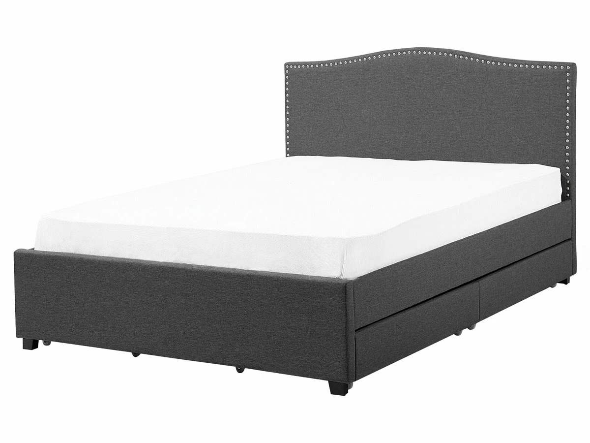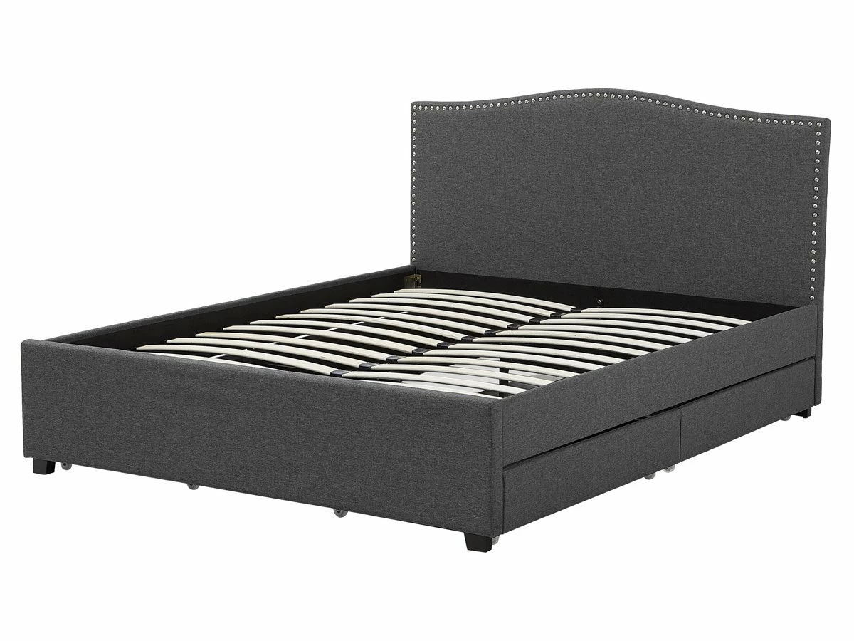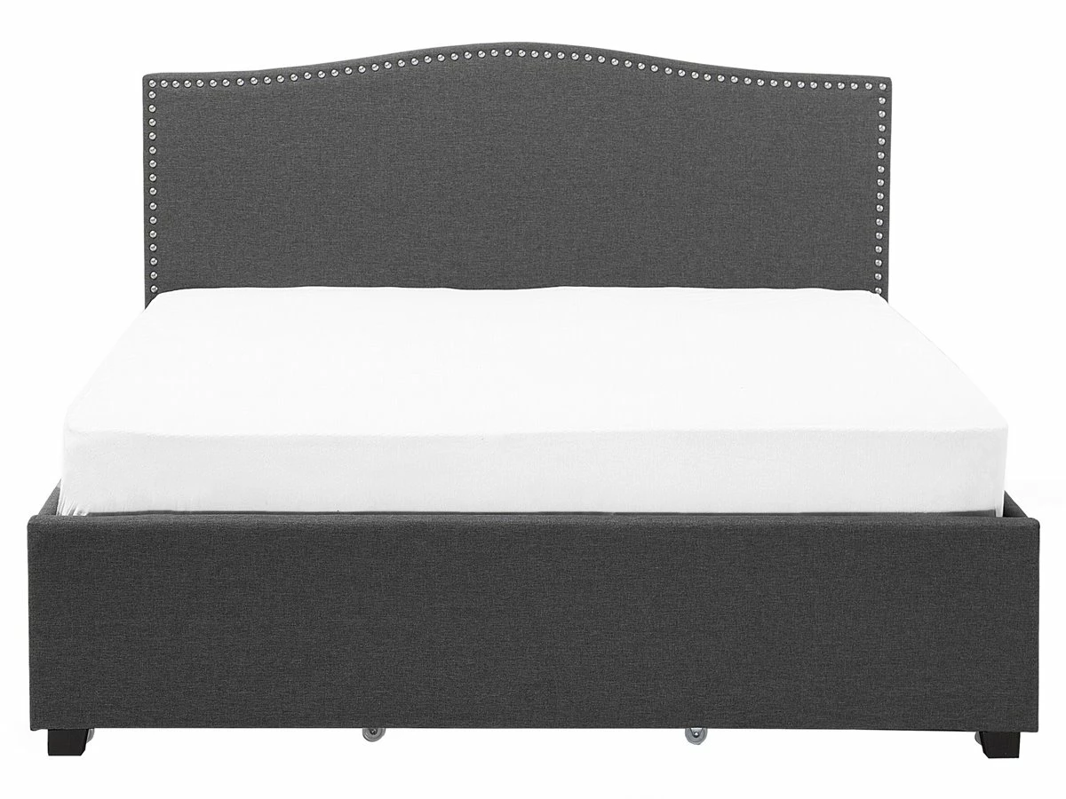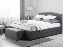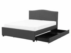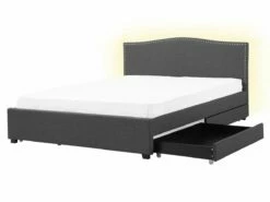 Cama de diseño tradicional. Añade un toque romántico a tu dormitorio con esta cama con somier. Está fabricada a partir de tela de poliéster de alta calidad y suave al tacto. El diseño simple y elegante resalta la decoración de cualquier suite moderna o vintage. Las tachuelas decorativas en el cabecero llaman poderosamente la atención. El amplio espacio de almacenaje optimiza la superficie disponible de la habitación. El panel LED funciona bien como luz nocturna. Detalles: Tipo de Producto: Cama matrimonial Estilo: Retro Color: Gris Color LED: Blanco Color Temperatura LED: Blanco cálido Tonalidad: Gris oscuro Tipo de material: Tejido Material principal: Poliéster Material adicional: Madera de caucho Material del almacenamiento: Tela no tejida Composición del Material: 100% Poliéster Parte posterior tapizada: No Flujo luminoso LED: 66 Tipo de LED: SMD 3528 LED: Sí Tipo de almacenamiento: Cajones Almacenamiento: Sí Dimensiones: Dimensiones del reposacabezas: 167×110 Ancho: 167 cm Dimensiones del almacenamiento: 92x12x58 Longitud: 213 cm Altura: 110 cm Superficie para dormir: 160×200 cm Peso: 66 kg Capacidad de peso: 350 kg La oferta incluye: 4 x Cajón de almacenaje, 1 x Estructura de cama, 1 x Somier (39 listones flexibles, 2 x Tiras LED (120 cm cada una, No incluye: colchón y ropa de cama Ventajas: Luz agradable y relajante , Instalación fácil y rápida, Muy cómodo, Llamativa iluminación LED que crea un ambiente agradable, Temporizador de apagado (desde 30 segundos hasta 10 minutos, La iluminación LED se enciende solo en la oscuridad, cuando se detecta movimiento, Espacio de almacenamiento funcional Información de montaje: Requiere montaje completo. 45-60 min. Información adicional: Tenga en cuenta que la imagen con la luz LED es solo ilustrativa. La tira LED es un elemento adicional que debe colocarse a lo largo del borde de la cama, por lo que el resultado final puede verse diferente. La altura del colchón visible en la imagen es de 20 cm. Consejos de mantenimiento: Poliéster: 1.Aspire con un accesorio adecuado 2.Limpiar con champú seco y una esponja húmeda o un limpiador suave. Madera de caucho: 1.Los muebles con acabado de aceite deben engrasarse una vez al año, 2.Seque inmediatamente después de limpiar. para evitar que se acumule agua en los muebles 3.Limpie con un limpiador y un paño suave en la dirección del grano.