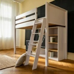 • Cama alta con 2 estanterías de diferentes tamaños con las puerta de pizarra de la colección Kasva
