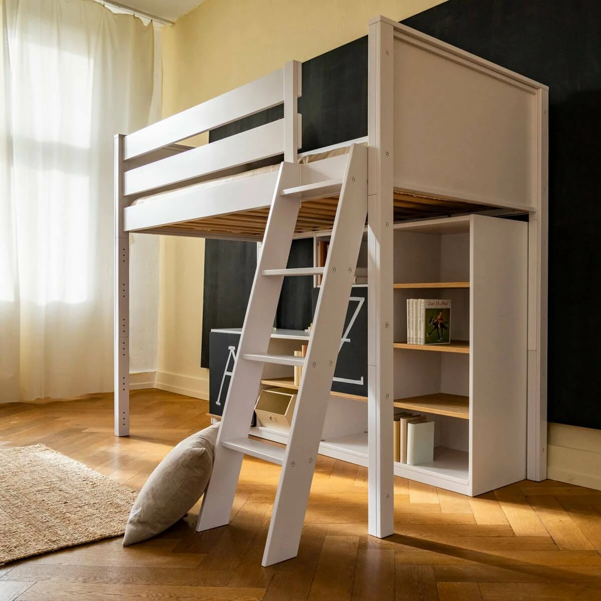 Cama alta-estantería pizarra KASVA De Breuyn haya lacado blanco.