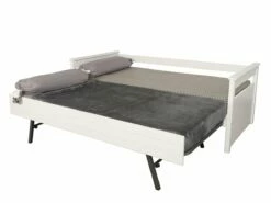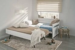 Si falta espacio en casa y tus hijos comparten habitación, esta cama nido DUPLEX es ideal. Por el día, podrán descansar o tumbarse en ella, y por la noche se despliega para dar paso a otra cama. Así solo ocupará el espacio necesario cuando se esté utilizando. Su diseño encaja en cualquier ambiente de decoración, por lo que no tendrás problema en integrarla con el resto de mobiliario del dormitorio juvenil.