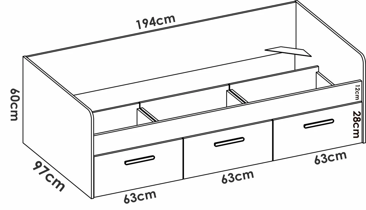 ¡Descubre la Cama Nido Con 3 Cajones Mek y revoluciona tu espacio! Esta estilizada y funcional Cama nido es la solución perfecta para aportar confort, almacenamiento y un toque moderno y juvenil a tu habitación.Diseñada con resistente madera manufacturada y acabados en melanina blanca de alta calidad, la Cama Nido Mek garantiza durabilidad y estilo en un solo producto.Sus 3 cajones amplios te ofrecen el espacio que necesitas para mantener tus cosas en orden, mientras que sus medidas de 60 cm de alto x 194,3 cm de ancho x 97 cm de fondo la convierten en la opción ideal para cualquier habitación, ¡incluso las más pequeñas!No pierdas la oportunidad de disfrutar de una cama cómoda y versátil, que se adaptará perfectamente a tus necesidades. ¡Dale un toque de frescura a tu dormitorio con la Cama Nido Con 3 Cajones Mek!•Dimensiones: 60 cm alto x 194,3 cm ancho x 97 cm fondo.•Color: Blanco.•Cama con colchón con 3 amplios cajones en la parte inferior del mueble.•Precisa un colchón de 90 x 190 no incluido (no necesita somier•Estructura diseñada con resistente madera manufacturada sobre lacado Blanco mate.•Incluye todos los herrajes, piezas e instrucciones detalladas para su perfecto montaje.•Servicio Post venta.•Las incidencias por rotura de transporte deben ser notificadas antes de las 24 horas desde su entrega.•En caso de que llegara alguna pieza dañada; debe ponerse en contacto con nuestro servicio de atención al cliente y se realizará la reposición sin cargo.