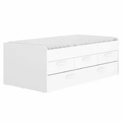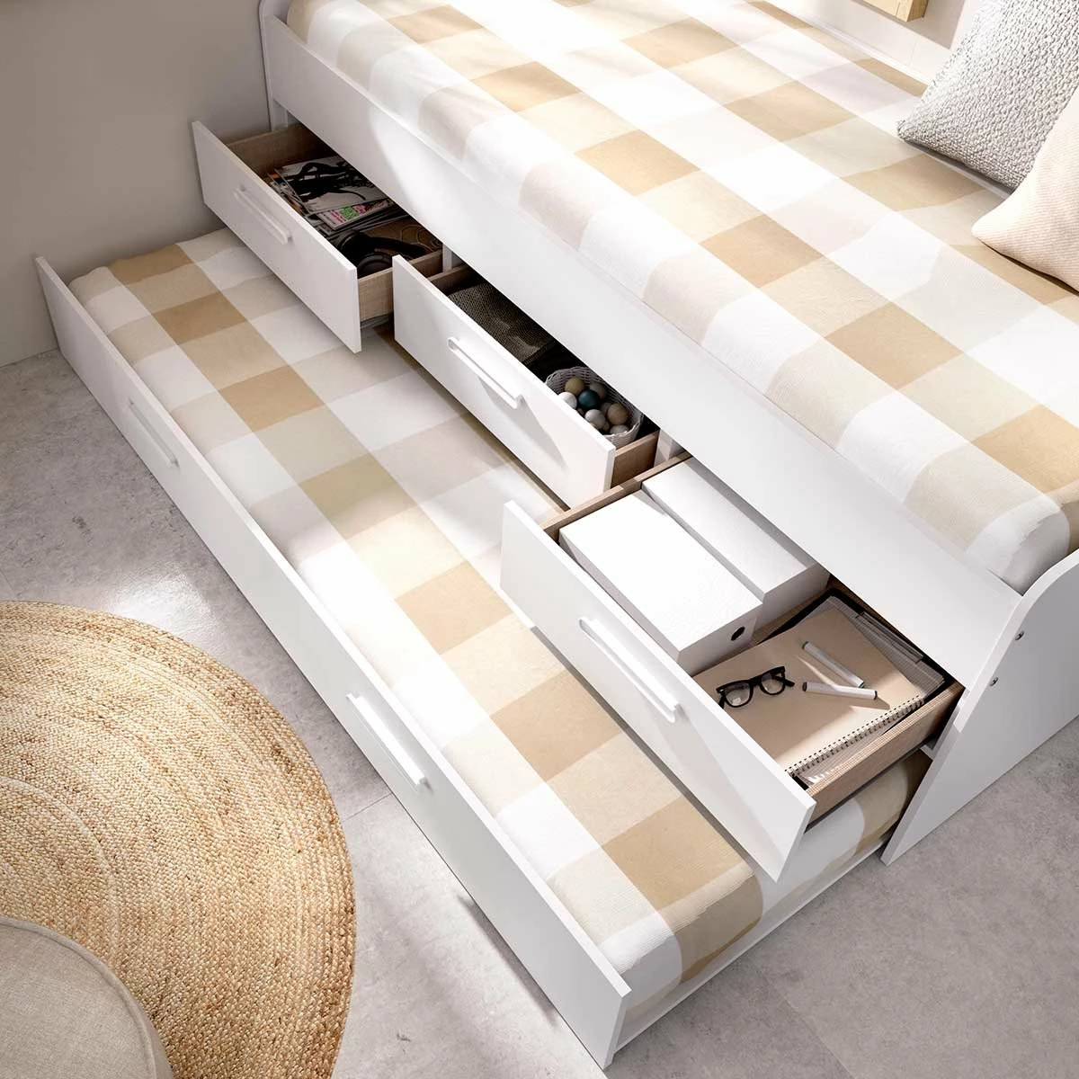 ¿Darías lo que fuese por tener más espacio de almacenamiento en lahabitación de tu hijo/a? ¡Tenemos la solución! La cama nido Leka cuenta con 3 prácticoscajones para que puedas guardar una gran cantidad de ropa, juguetes, zapatos yotros enseres y descargar así el armario y las estanterías. El mueble estáfabricado en melamina de buena calidad, lo que nos asegura una gran resistenciaal paso del tiempo. Con su bonito y suave color, combinará sin problema con elresto de los muebles y elementos del dormitorio. Además, esta cama Leka tieneun mantenimiento y montaje de lo más sencillo. Por su parte, cuenta concapacidad para 2 colchones de 90 x 190 cm, unas medidas estándar que soncompatibles con la mayoría de colchones infantiles y juveniles. ¡Tus hijos podrán invitar a sus amigos! ¡No te pierdas esta fantástica cama Leka a unprecio de chollo en Embargosalobestia!