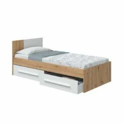 La cama Noa es una cama individual infantil o juvenil con capacidad para un colchón de 90x190cm (no incluido y con dos cajones inferiores ideales para almacenaje. Muy versátil gracias a su discreto diseño, es ideal como cama de crecimiento o cama supletoria. No incluye somier ni colchón.