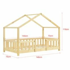 Esta resistente cama de madera de pino es la favorita de los niños. Es ideal para decorar cualquier habitación de los niños. La seguridad de su hijo está garantizada por la rejilla que rodea el colchón.