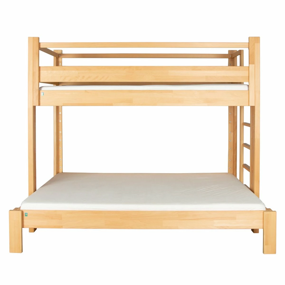 La zona inferior para dormir, de 140 cm de ancho, es un lugar cómodo para los padres y el niño o una zona extra para dormir los invitados. La sección superior de 90 cm de ancho, accesible mediante una escalera lateral, puede adaptarse a sus necesidades: zona principal o adicional para dormir o descansar, ¡tu eliges!
