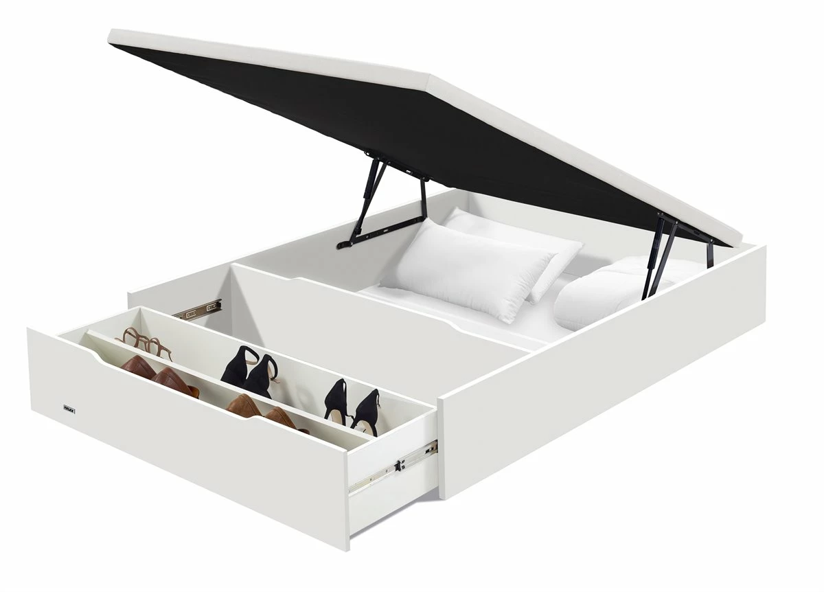 ¿Problemas de espacio?No te preocupes, tenemos una solución fácil y práctica para ayudarte a tenerlotodo más organizado. Nuestro canapé de madera FLEX CON ZAPATERO es laopción más práctica para aprovechar la funcionalidad de su espacio interiorgracias a su fondo útil de 31 cm, además dispone de un espaciopara almacenar nuestros zapatos. Sus pistones de máxima calidad,accionados a gas proporcionan una fácil apertura, conseguirás con el mínimoesfuerzo elevar la tapa. Pero además de práctico, el canapé demadera FLEX CON ZAPATERO aportará un extra de firmeza a tu equipo dedescanso, su tablero de madera perforado (transpirable sobre estructurametálica con traviesas longitudinales, proporciona un óptimo soporte alcolchón. La tapa cuenta con tejido antideslizante con efecto 3D que evita que el colchón se desplace y ademásfavorece la aireación. Todo son ventajas, incluso la limpieza será mássencilla, con su fondo apoyado directamente al suelo evitarás que la suciedad se acumule bajo la base de tu canapé.