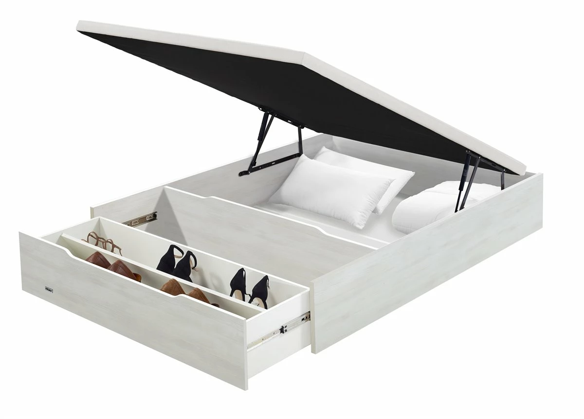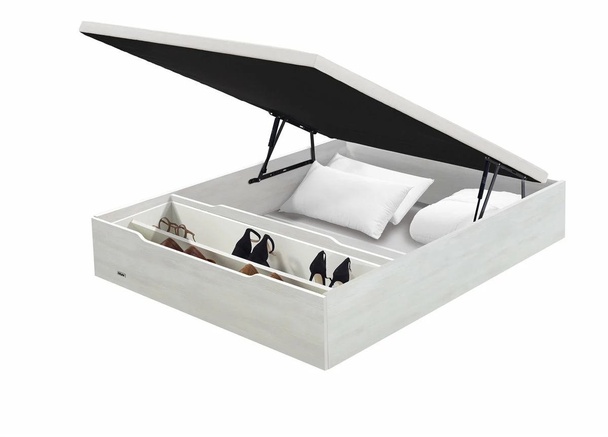 ¿Problemas de espacio?No te preocupes, tenemos una solución fácil y práctica para ayudarte a tenerlotodo más organizado. Nuestro canapé de madera FLEX CON ZAPATERO es laopción más práctica para aprovechar la funcionalidad de su espacio interiorgracias a su fondo útil de 31 cm, además dispone de un espaciopara almacenar nuestros zapatos. Sus pistones de máxima calidad,accionados a gas proporcionan una fácil apertura, conseguirás con el mínimoesfuerzo elevar la tapa. Pero además de práctico, el canapé demadera FLEX CON ZAPATERO aportará un extra de firmeza a tu equipo dedescanso, su tablero de madera perforado (transpirable sobre estructurametálica con traviesas longitudinales, proporciona un óptimo soporte alcolchón. La tapa cuenta con tejido antideslizante con efecto 3D que evita que el colchón se desplace y ademásfavorece la aireación. Todo son ventajas, incluso la limpieza será mássencilla, con su fondo apoyado directamente al suelo evitarás que la suciedad se acumule bajo la base de tu canapé.