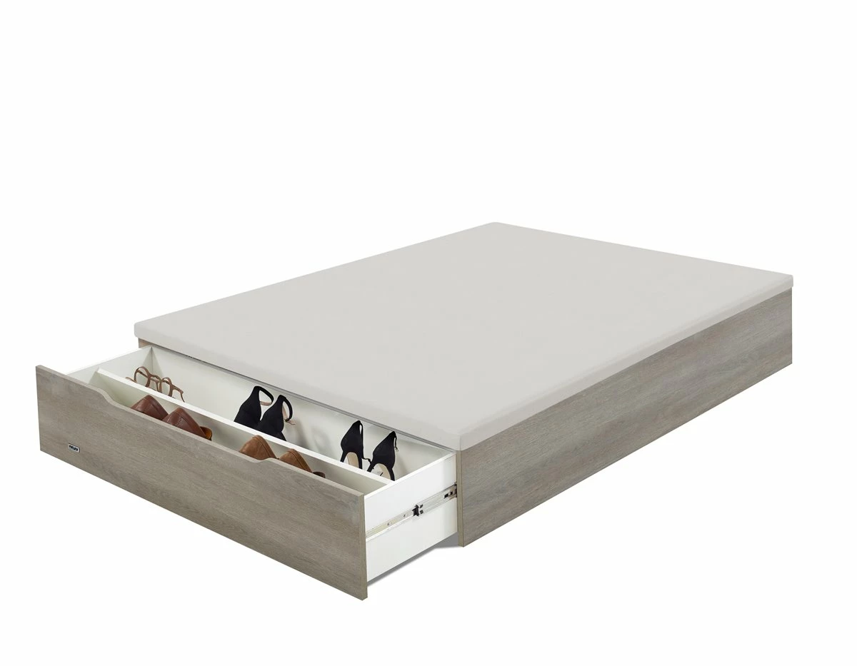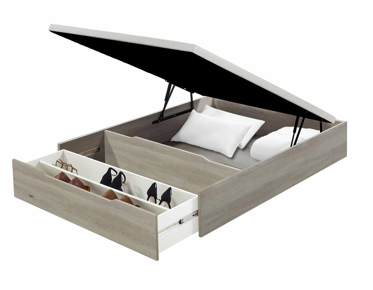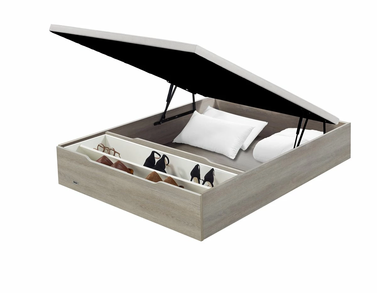 ¿Problemas de espacio?No te preocupes, tenemos una solución fácil y práctica para ayudarte a tenerlotodo más organizado. Nuestro canapé de madera FLEX CON ZAPATERO es laopción más práctica para aprovechar la funcionalidad de su espacio interiorgracias a su fondo útil de 31 cm, además dispone de un espaciopara almacenar nuestros zapatos. Sus pistones de máxima calidad,accionados a gas proporcionan una fácil apertura, conseguirás con el mínimoesfuerzo elevar la tapa. Pero además de práctico, el canapé demadera FLEX CON ZAPATERO aportará un extra de firmeza a tu equipo dedescanso, su tablero de madera perforado (transpirable sobre estructurametálica con traviesas longitudinales, proporciona un óptimo soporte alcolchón. La tapa cuenta con tejido antideslizante con efecto 3D que evita que el colchón se desplace y ademásfavorece la aireación. Todo son ventajas, incluso la limpieza será mássencilla, con su fondo apoyado directamente al suelo evitarás que la suciedad se acumule bajo la base de tu canapé.