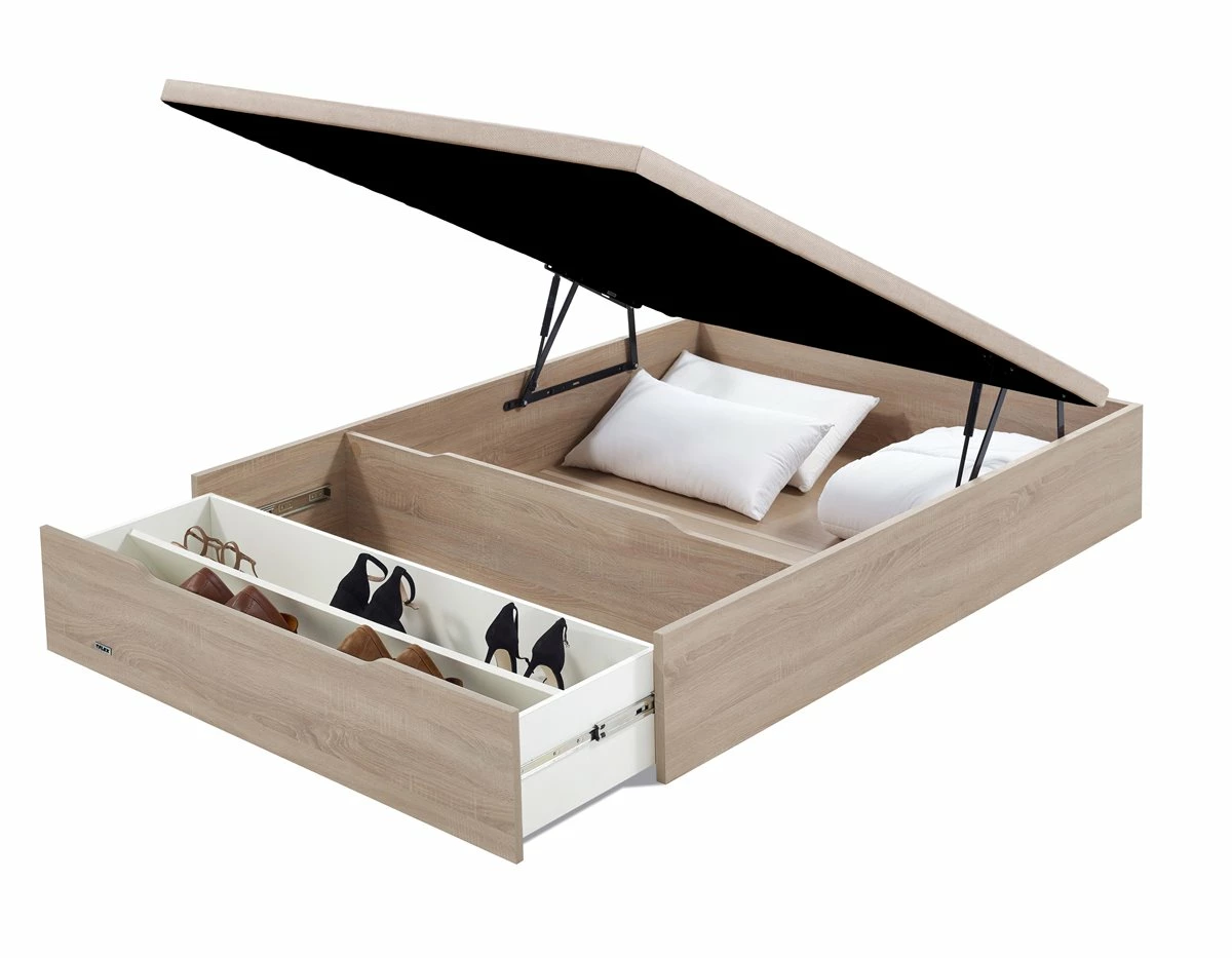 ¿Problemas de espacio?No te preocupes, tenemos una solución fácil y práctica para ayudarte a tenerlotodo más organizado. Nuestro canapé de madera FLEX CON ZAPATERO es laopción más práctica para aprovechar la funcionalidad de su espacio interiorgracias a su fondo útil de 31 cm, además dispone de un espaciopara almacenar nuestros zapatos. Sus pistones de máxima calidad,accionados a gas proporcionan una fácil apertura, conseguirás con el mínimoesfuerzo elevar la tapa. Pero además de práctico, el canapé demadera FLEX CON ZAPATERO aportará un extra de firmeza a tu equipo dedescanso, su tablero de madera perforado (transpirable sobre estructurametálica con traviesas longitudinales, proporciona un óptimo soporte alcolchón. La tapa cuenta con tejido antideslizante con efecto 3D que evita que el colchón se desplace y ademásfavorece la aireación. Todo son ventajas, incluso la limpieza será mássencilla, con su fondo apoyado directamente al suelo evitarás que la suciedad se acumule bajo la base de tu canapé.