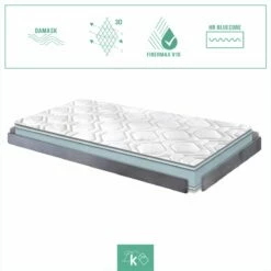El colchón Damas de firmeza alta con tejido damasco, con una altura de ±12 cm, consigue adaptarse a cualquier tipo de camas, canapés o sofás cama, gracias a sus medidas y componentes. Este colchón está compuesto por dos caras: CARA DE INVIERNO. Compuesta por tejido DAMASCO de tacto suave y brillante, es higiénico y antideslizante. Le otorga a nuestro colchón propiedades altamente transpirables, ya que permite la libre circulación de aire, ventilando continuamente el núcleo de nuestro colchón mejorando su rendimiento y durabilidad. Acolchado con FIBERMAX V10, el resultado de seleccionar cuidadosamente fibras hipoalergénicas y someterlas a un tratamiento de iones hipoalergénico, antiácaros y antibacterianos que proporcionan transpirabilidad al descanso a la vez que evita la proliferación de bacterias para una mayor higiene. Reduciendo la aparición de alergias y consiguiendo una temperatura constante del colchón. Permite la libre circulación del aire ventilando continuamente el núcleo de nuestro colchón. CARA DE VERANO. El tejido 3D AirFresh gris es ideal para la cara de verano de nuestro colchón, ya que es un tejido tridimensional altamente transpirable y flexible, siendo especialmente indicado para la dispersión de la humedad y mejora del descanso. Acolchado con FIBERMAX V10, el resultado de seleccionar cuidadosamente fibras hipoalergénicas y someterlas a un tratamiento de iones hipoalergénico, antiácaros y antibacterianos proporcionando transpirabilidad al descanso a la vez que evita la proliferación de bacterias para una mayor higiene. Reduciendo la aparición de alergias y consiguiendo una temperatura constante del colchón. Permite la libre circulación del aire ventilando continuamente el núcleo de nuestro colchón. NÚCLEO. Núcleo HR-BlueCORE. Núcleo flexible de alta densidad, 23kg/m3, para un descanso estable. Material altamente adaptable y transpirable gracias a su estructura microcelular de poro abierto. Esto permite un mayor flujo de aire y reduce la posibilidad de humedades. Nuestro núcleo HR-BlueCORE presenta una gran resiliencia; tiene una gran capacidad de recuperar su estado inicial tras ser sometido a una presión, aumentando su durabilidad y confort. MATERIALES. FIBERMAX V10: Selección de tejidos hipoalergénicos, transpirabilidad y reducción de bacterias. Tejido Damasco: Suave, higiénico y antideslizante, Altamente transpirable, Gran capacidad de ventilación. Tejido 3D Airfresh: Transpirable, Tridimensional, Flexible, Dispersor de humedad, Aislante, Ligero y moldeable. Núcleo HR-blueCORE: Núcleo flexible de alta densidad, Densidad 23kg/m3, Material altamente adaptable, Microcelular de poro abierto, Gran resiliencia y transpirabilidad. PROPIEDADES. Hipoalergénico. Todos los materiales utilizados en la fabricación han sido sometidos a tratamientos de iones para conseguir que sean hipoalergénicos, antiácaros y antibacterianos. Garantía: 2 años de garantía ante defectos de fabricación.