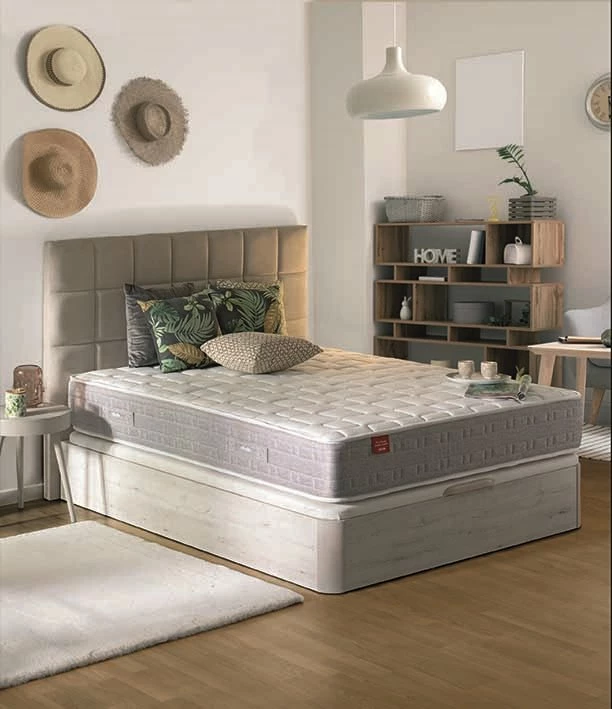 El colchón Ara Adapt-Tech® está compuesto por el núcleo de muelles ensacados Adapt-Tech®, una capa de poliéter y fibra atérmica, y una capa de acolchado ViscoFoam®. Su núcleo de muelles ensacados Adapt-Tech® permite una adaptación punto por punto a la morfología de cada durmiente, favoreciendo la independencia de lechos. Su capa de acolchado ViscoFoam® acoge al cuerpo del durmiente sin atraparlo en función de la presión corporal y su huella térmica , reduciendo la presión sanguínea al tiempo que dispersa el calor que generamos al dormir. Mientras que la capa Fibertech® deja pasar el aire de forma continuada durante el descanso. Todos los colchones Pikolin cuentan con la tecnología de higiene total Triple Barrera® que protege y previene contra el desarrollo de las principales fuentes bacterianas de un colchón: ácaros, bacterias y hongos.