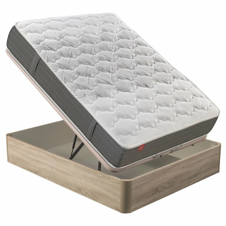Pack Dreamlight 8k con base abatible King Box de madera natural gratis. El colchón Dreamlight 8k está compuesto por el núcleo de muelles Normablock®, un amortiguador de poliéter y una capa de Comfort Up®. El mejor núcleo de muelles de hilo continuo del mercado, Normablock®, favorece la independencia de lechos para no notar los movimientos de la pareja al dormir, y permite un descanso estable y duradero gracias a la alta durabilidad de su material. Su capa de acolchado Comfort Up® está compuesta de HR y fibras de alto gramaje que conforman un confort suave, progresivo y seco al descansar. Todos los colchones Pikolin cuentan con la tecnología de higiene total Triple Barrera® que protege y previene contra el desarrollo de las principales fuentes bacterianas de un colchón: ácaros, bacterias y hongos.