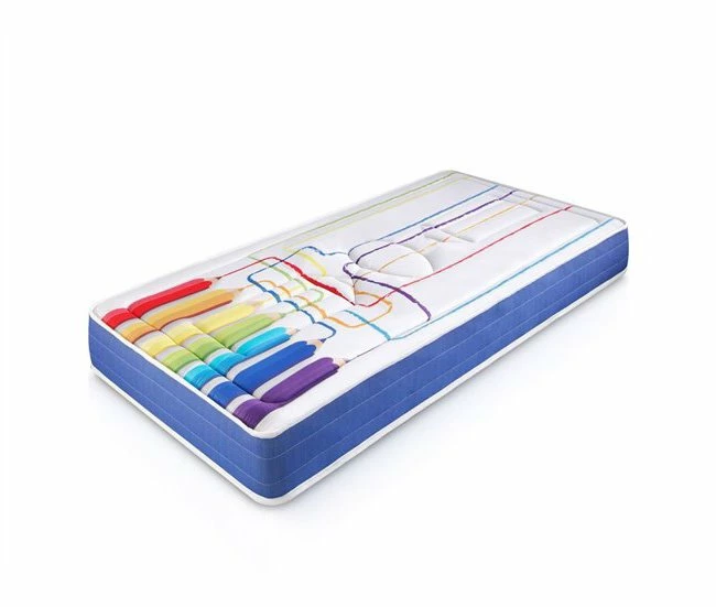 Con un original dise帽o de l谩pices de colores que los m谩s peques utilizan en la escuela, este colch贸n se adapta perfectamente al cuerpo, proporcionando un mejor confort y descanso.