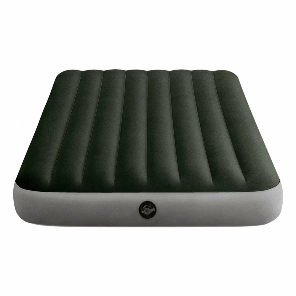 Cama hinchable doble de camping INTEX Prestige Downy de 137x191x25cm, soporta hasta 273 Kg. Incluye hinchador eléctrico de 25W para inflarlo en 3,5 min (funciona con 6 pilas tipo C no incluidas y válvula 2 en 1. Fabricado con tecnología Fiber-Tech y Air Lock que proporciona más estabilidad y firmeza. Material PVC laminado que aporta mayor resistencia frente a posibles roces y al agua y superficie suave y acanalada.