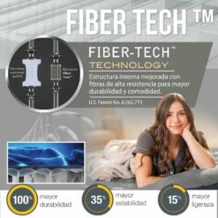 - Tech: tecnología de miles de fibras de poliéster de gran resistencia que no se estiran ni con el tiempo ni por el uso, ofreciendo estabilidad duradera