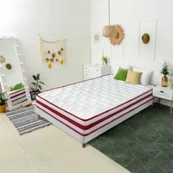 El colchón Rubí cuenta con un núcleo HR Foam diseñado especialmente para acoger la columna con la firmeza necesaria para su correcto posicionamiento y descanso. Su alta resistencia se combinada con el acolchado de Fibra hipoalergénica que acoge el cuerpo progresivamente, proporcionando una tumbada muy cómoda. La capa de poliester soft añade firmeza y resistencia al colchón, elevando la firmeza hasta media-alta, sin pérdida de adaptabilidad. Al ser ambas caras del colchón iguales, dale la vuelta periódicamente para seguir disfrutando del mejor descanso y alarga la vida útil del colchón. Un colchón básico con grandes prestaciones y un diseño juvenil. // CARACTERÍSTICAS: Altura total +-20cm. Acolchado en ambas caras de fibra+poliester soft de 2 cm de cómoda acogida. Núcleo HR Foam, firme y cómodo. Tejido Aloe Vera, muy suave y con grandes beneficios para la piel. Lateral con banda 4D roja de máxima ventilación. Cerrado con ribete reforzado para mayor compactibilidad. El tejido Aloe Vera proporciona suavidad y frescor, es hipoalergénico y bactericida, para un descanso relajante y natural. Sistema SANITIZED anti-hongos, anti-bacterias y anti-ácaros. El colchón se envía enrollado y envasado al vacío.