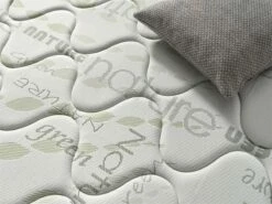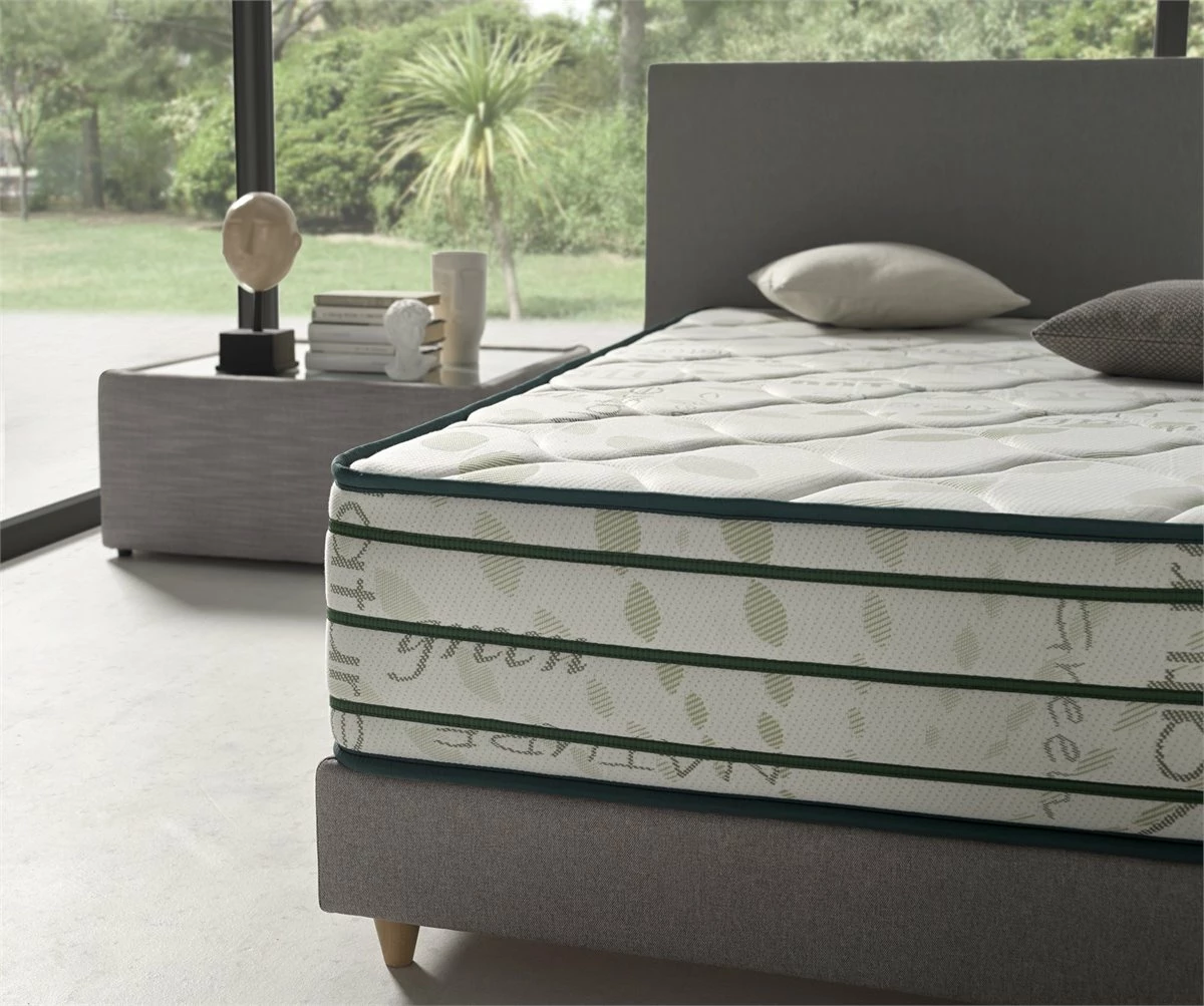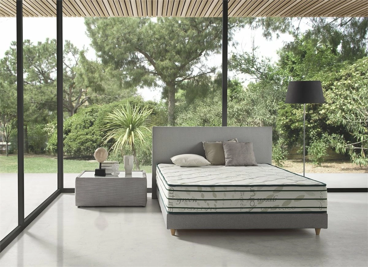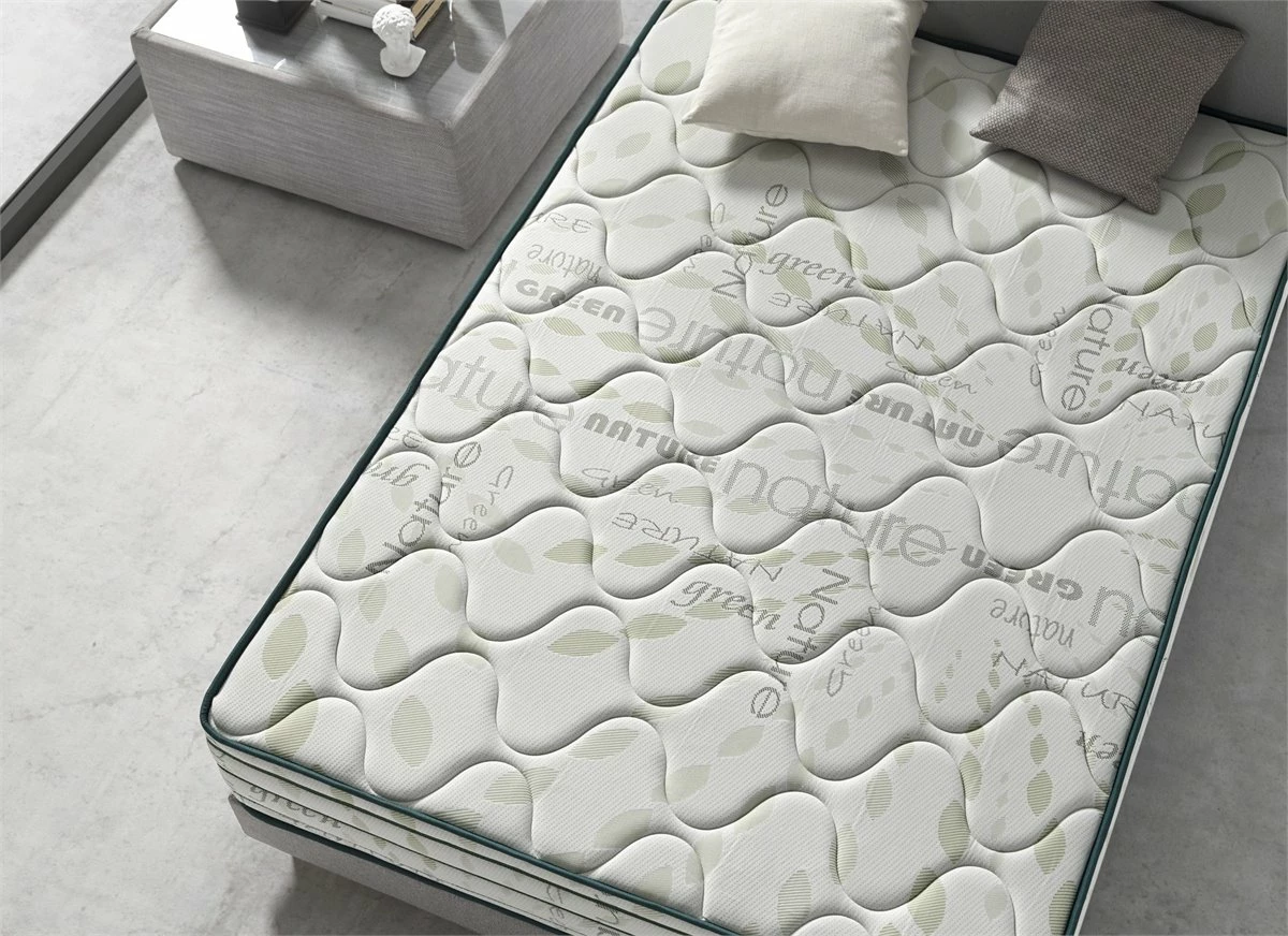 Nuestro colch贸n ENSACADO GREEN NATURA combina a la perfecci贸n y el respeto por la sostenibilidad con sus materiales Bio Nature y la m谩xima calidad de descanso que ofrece por su enfoque ergon贸mico, haciendo 茅nfasis en los 11 puntos de presi贸n corporal claves en el proceso del descanso.Esta generaci贸n de colchones de muelle ensacado incorpora dos c谩maras de aire independientes realizadas en tejido tridimensional, que producen una salida de aire constante y proporciona un aislamiento t茅rmico totalmente individualizado y que, junto a la zona tridimensional de su base, garantiza el flujo del aire en un entorno 360潞.Caracter铆sticas T茅cnicas:鈼咥ltura: 30 cm +/- 2鈼咶irmeza: Media-Alta.鈼咥colchado superior: 5 cm del visco + supersoft鈼哊煤cleo de Muelle Ensacado: En total 750 muelles independientes (para la medida de 150 x 190 cm que otorgan una adaptabilidad personalizada a cada zona del colch贸n.鈼哖latabanda: Tejido Moncel Nature con acolchado ultrasonido.鈼咥colchado continuo: Cada tapa se fabrica con un dibujo que emplea elaboradas formas geom茅tricas sin espacios ni saltos entre las costuras. Mediante la uni贸n de las diferentes capas de alta y baja resiliencia se consigue un efecto similar a la ingravidez.鈼咥colchado cara inferior: tejido tridimensional 3D entrelazado altamente transpirable y tacto suave.鈼哛ibete: Cosido especial de seguridad del ribete para una mejor compactibilidad. Tratamientos y certificados de nuestros colchones: 鈼咶unci贸n higi茅nica Sanitized庐 (especialista en el tratamiento antimicrobiano de textiles que protege a los colchones contra la formaci贸n de moho y algas, reduce la presencia de 谩caros y ofrece una protecci贸n duradera.鈼咥nti-humedad: Debido a que est谩 elaborado con un tejido de 煤ltima generaci贸n, da como resultado una 贸ptima circulaci贸n del aire. Evitando la acumulaci贸n de humedad, manteniendo el colch贸n ventilado, creando la temperatura perfecta mientras duermes.鈼哠ilencioso: Gracias a su estructura y composici贸n, hace que no produzca ning煤n ruido durante los movimientos que hace nuestro cuerpo mientras duerme.鈼咺ndependencia de lechos.鈼咥s铆 mismo, nuestros colchones se han creado para respetar la correcta alineaci贸n de nuestra columna mientras descansamos.鈼員odos los tejidos que empleamos para la fabricaci贸n de estos colchones cumplen la normativa OEKO-TEX庐 Standard 100 (productos libres de sustancias nocivas. Instrucciones de uso, cuidados y Garant铆a.鈼咵l colch贸n es enviado enrollado y embalado al vac铆o.鈼咵s aconsejable no utilizar el Colch贸n hasta 10 horas despu茅s de ser desembalado.鈼哖rot茅gelo con una funda o protector. Asp铆ralo por lo menos una vez al mes. Recuerda que 茅ste debe ir sobre una superficie uniforme y no dejar vac铆os que causan deformidad.鈼咷铆ralo con frecuencia. Garant铆a de 2 a帽os.Fabricado en Espa帽a.Nota: Por favor, revise bien el art铆culo a la hora de la entrega o montaje, antes de que el transportista u operario abandone el domicilio. Cualquier tipo de da帽o o incidencia en el env铆o o montaje tiene que ir reflejado en el albar谩n de entrega, a la hora de firmar, para poder reclamar a la empresa o persona responsable correspondiente.