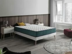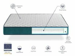 ❤️[FICHA TÉCNICA]•La altura total: 24 cm* Firmeza: 3/5 Media* Dimensiones: Disponible en diferentes medidas. Consúltanos* Material del núcleo: Muelles ensacados y espuma de poliuretano altamente transpirable.* Material exterior: 100% poliéster* Acabados: en tonos azules y blancosEl modelo CRONO SPRING está formado por muelles ensacados de firmeza media que se adaptan a cada punto de nuestro cuerpo y ofrecen una alta independencia de lecho y transpirabilidad.🛌[SUEÑO CÓMODO Y REPARADOR]Núcleo de carcasa de muelles ensacados independientes que se adapta a la forma del cuerpo durante el descanso. Los muelles tienen un marco perimetral extra firme para dar seguridad y durabilidad al colchón. Gracias a sus capas de alta espumación a ambos lados del núcleo, aseguran una postura correcta de la espalda, hombros y cuello. Cada muelle está encapsulado de forma independiente lo que permite una mayor transpirabilidad del núcleo, una mayor adaptación a cada punto del cuerpo y la ausencia de ruidos. Soporte óptimo, silencioso y con alta independencia de lecho.La cara superior e inferior están acolchadas con fibra hipoalergénicas y actúan como barrera ante la proliferación de ácaros. Además, esta fibra se combina con espuma Super Soft para generar una acogida suave, adaptable e higiénica.Los acabados de este modelo son en tonos azules turquesas y blancos. Todos los tejidos son muy suaves al tacto y de alto gramaje.🥇[SOPORTE ÓPTIMO]Este tipo de colchón de muelles ensacados tienen una firmeza media, ofrecen un soporte perfecto y ayudan a la correcta circulación del aire durante el descanso. ✨ [GARANTIA DE SATISFACCIÓN]* Fabricación: Somos fabricantes europeos* Certificados: en todos sus tejidos* Envío: enrollado con plástico en una caja de cartón protectora