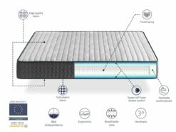 ❤️ [FICHA TÉCNICA] La altura total: 24 cm Firmeza: 3/5 Media Dimensiones: Disponible en diferentes medidas. Consúltanos Material del núcleo: Muelles independientes ensacados Material exterior: 100% poliéster Acabados: en tonos blancos y grises de tacto sedoso. Puntos fuertes: Silencioso, de alta independencia de lecho y ergonómico.🛌 [MUELLES ENSACADOS, ADAPTABLE Y TRANSPIRABLE]El modelo PERLA Spring es un colchón ergonómico, con gran independencia de lecho y altamente adaptable gracias a sus capas superior e inferior de confort. Doble relajación para las zonas musculares. Su núcleo está formado por muelles independientes ensacados de tumbada y adaptación progresiva.Cada muelle está embolsado de manera individual, lo que impide que se deformen y consigue que trabaje de manera independiente al resto de muelles. Proporciona un soporte homogéneo y confortable. Este núcleo está reforzado con un cofre de espuma de alta densidad para mantener una postura alineada de la columna vertebral.🥇 [SOPORTE ÓPTIMO]Este tipo de colchones son ideales para reducir presión corporal y aliviar tensiones. No importa cuánto nos movamos durante la noche, sus capas de confort se amoldan a la forma de nuestro cuerpo y además disipa el calor corporal para disminuir la acumulación de humedad.✅ [DURADERO Y CON CARÁCTER]Este modelo es un colchón cerrado de larga durabilidad. El tejido de la cara superior es tejido strech de alto gramaje. Suave al tacto y esponjoso. Combinamos la suavidad de este tejido con 2 CM de espuma adaptable y termorregulable y un para conseguir una adaptación progresiva a la morfología de nuestro cuerpo y generar una sensación de acogida.Ambas caras del colchón son iguales.Finalmente, rodeamos nuestro colchón con un tejido de color grisáceo con tacto de terciopelo para otorgar elegancia y modernidad.✨ [GARANTIA DE SATISFACCIÓN] Fabricación: Somos fabricantes europeos Certificados: Envío: enrollado con plástico en una caja de cartón protectora con el mínimo impacto medioambiental.