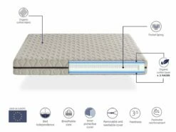 ❤️ [FICHA TÉCNICA]Altura total: 25 cm (+/- 1 cmFirmeza: 3/5 MediaMaterial del núcleo: Muelles ensacados (+400 muelles por metro cuadrado con marco perimetral firme de espuma de 30 kg/m3Material exterior: tejido 100% algodón orgánico y linoRelleno: relleno de algodón 100% naturalAcabados: en tonos ocres, suaves y naturalesPuntos fuertes: natural, libre de sustancias nocivas, gran independencia de la cama y ergonomía.Dimensiones: Disponible en diferentes tamaños. Preguntanos[NATURAL, ORGÁNICO Y SIN SUSTANCIAS NOCIVAS]El modelo Spring Organic Terra es un colchón fabricado con materiales naturales como el algodón orgánico y el lino.El algodón orgánico es un material fresco en contacto con la piel y muy transpirable. Crece de forma natural sin fertilizantes ni pesticidas, por lo que ayuda a prevenir la aparición de alergias. Es un material de alta calidad, respetuoso y delicado con la piel.El lino es un tejido suave y de aspecto natural. Es un material ultra transpirable y termorreguladorLa combinación de estos dos materiales naturales es ideal para ofrecerte un sueño más saludable y proporcionarte un descanso ultrasuave.🥇 [TRANSPIRABLE Y ERGONÓMICO]Su núcleo está formado por muelles ensacados de más de 400 muelles por metro cuadrado y de pequeño diámetro que se adaptan a cada punto de presión de nuestro cuerpo. Cada muelle ensacado es independiente y por tanto se obtiene una gran independencia de la cama. Muelles silenciosos y ergonómicos. Además, cuenta con un refuerzo perimetral con espuma firme de 30 kg/m3 para evitar el descolgamiento y garantizar una gran durabilidad.Por mucho que nos movamos por la noche, los materiales se adaptan a la forma de nuestro cuerpo. Gracias a las cámaras de aire que se generan en el interior del muelle, el calor se disipa y hace que este tipo de colchón sea muy transpirable.✅ [DURABLE Y CON CARÁCTER]Este modelo es un colchón de larga duración con funda extraíble.Tiene una funda exterior y una funda interior, ambas lavables a 30 grados para garantizar una alta higiene.La cubierta exterior está hecha de tela gruesa de algodón y lino. Suave al tacto y esponjoso. Combinamos la suavidad de este tejido con una plancha de algodón adaptable y termorreguladora.La funda interior está diseñada para proteger los materiales base y facilitar la extracción y el reenfundado.