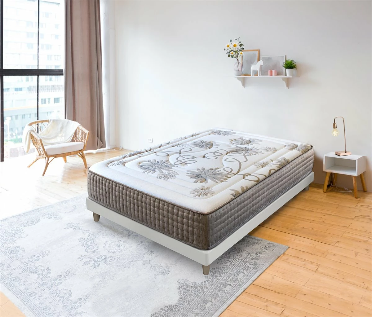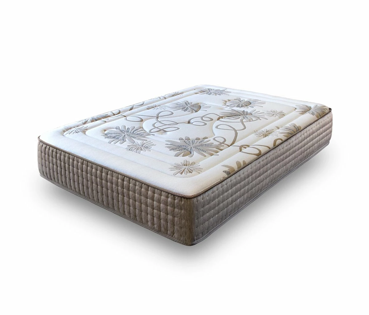 La primavera llega a tu habitación con este alegre y elegante colchón lleno de margaritas. Las mejores calidades se unen en este colchón par aportar el descanso más placentero: el núcleo de espuma HR proporciona el soporte firme apropiado el descanso, mientras que el acolchado de viscoelástica se adapta a tu cuerpo proporcionando el efecto nube más relajante. // CARACTERÍSTICAS: Altura total +-30cm. Acolchado de viscoelástica+supersoft de 3,5cm con cómoda acogida y un completo efecto nube. Núcleo HR moldeado de microporos abiertos de alta firmeza. Tejido Strech Daisy (Margarita de la más alta calidad y suavidad en acolchado tapa a tapa con acabados de lujo. Lateral ultrasuave en elegante acolchado capitoné. Acolchado inferior en tejido 3D beige de alta ventilación. Cerrado con ribete reforzado para mayor compactibilidad. Sin puntos de presión sobre las 9 zonas de descanso. Suavidad y adaptabilidad combinado con un soporte firme para un descanso reparador y sin interrupciones. Diseño elegante y moderno con un bonito estampado y acabados de la más alta calidad. Sistema SANITIZED anti-hongos, anti-bacterias y anti-ácaros. El colchón se envía enrollado y envasado al vacío