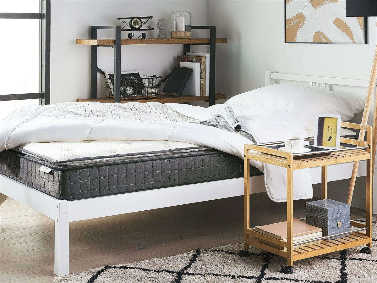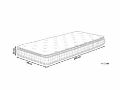 Colchón de dureza media. Mejora la calidad de tu descanso con este colchón. Está fabricado a partir de tela de poliéster resistente. El relleno de espuma viscoelástica garantiza un sueño saludable y se adapta rápidamente a la forma del cuerpo. La cubierta de fibras de bambú regula la temperatura corporal. Detalles: Tipo de Producto: Colchón Color: Blanco Tipo de material: Tejido Material principal: Poliéster Material de la superficie: Fibra de bambú Material del relleno: Viscoelástico Firmeza: Media Cubierta del colchón: No desmontable Tipo de colchón: Espuma de memoria Recommendado para: Personas con dolor de espalda Dimensiones: Ancho: 90 cm Longitud: 200 cm Altura: 20 cm Superficie para dormir: 90×200 cm Peso: 12 kg Capacidad de peso: 300 kg La oferta incluye: 1 x Colchón, 1 x Funda de protección , No incluye: cama y accesorios Ventajas: Distribución uniforme del peso corporal, Colchón sólido (firmeza H2, media, Revestido en espuma de poliuretano, Óptima circulacion del aire , Fabricación sólida y precisa Información de montaje: No requiere montaje Información adicional: Después de desembalar, el producto tarda aproximadamente 72 horas en obtener la forma deseada. Para conseguir el mejor resultado, recomendamos desdoblarlo lo antes posible y colocar un peso en los extremos. Consejos de mantenimiento: Fibra de bambú: 1.Limpiar con champú seco y una esponja húmeda o un limpiador suave 2.Aspire con un accesorio adecuado.