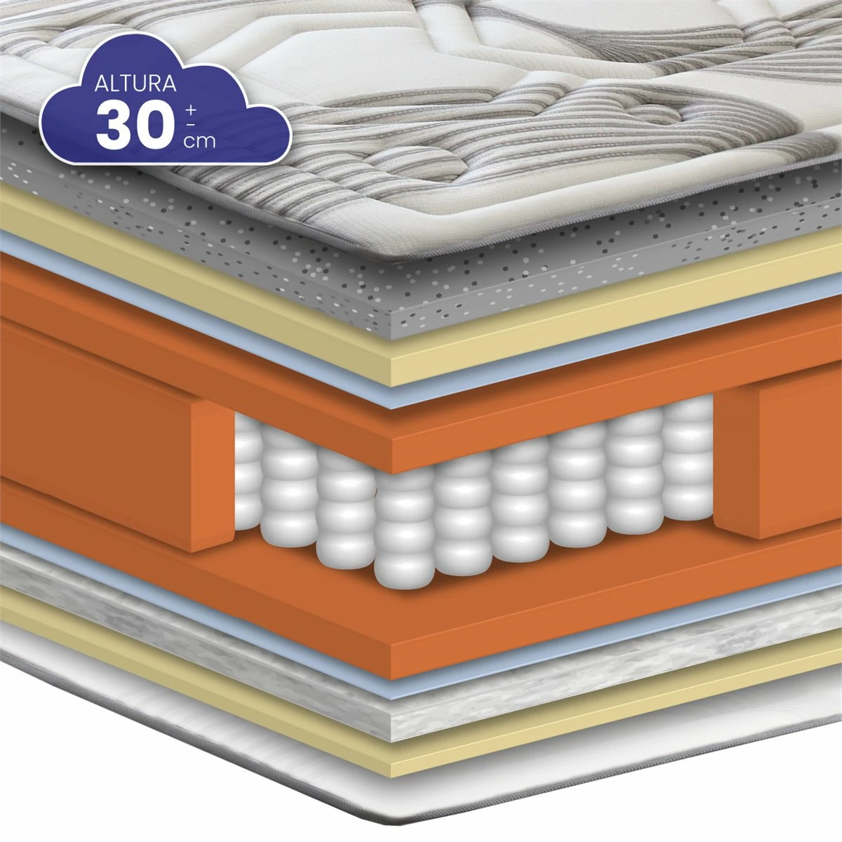 El aspecto cl谩sico del colch贸n Classic Grafeno contrasta con la novedosa tecnolog铆a de su n煤cleo. La carcasa de muelles ensacados, para una gran firmeza, y el acolchado de Viscografeno en la parte superior, para la mayor comodidad, nos proporcionan el descanso reparador y relajante que necesitamos. El viscografeno es la 煤ltima tecnolog铆a en espumas, con efectos ionizantes, termorreguladores y anti cargas est谩ticas y el n煤cleo de muelles ensacados proporcionan la firmeza y durabilidad de los colchones antiguos, pero con total independencia de lechos, para un descanso sin interrupciones. Disfruta de las 煤ltimas tecnolog铆as de descanso con un dise帽o cl谩sico y atemporal de l铆neas suaves y elegantes. // CARACTER脥STICAS: Altura total +-30cm. Acolchado de viscografeno+supersoft de 3,5cm con c贸moda acogida, regulador t茅rmico e ionizante. N煤cleo de carcasa de muelles ensacados Pocket Spring con refuerzos de espuma perimetrales para mayor compactibilidad. Tejido Strech Classic de alta calidad y suavidad en acolchado tapa a tapa con acabados de lujo. Lateral ultrasuave Velour Gris Grafeno acolchado con tecnolog铆a de ultrasonidos. Acolchado inferior en tejido 3D gris de alta ventilaci贸n. Cerrado con ribete reforzado para mayor compactibilidad. Propiedades del Viscografeno: anti-est谩ticas, descargando esta electricidad cuando descansamos; anti-microbianas, repeliendo toda clase de organismos extra帽os para un descanso higi茅nico; termorreguladoras, gracias a la hiperconductividad del grafeno se mantiene una temperatura siempre 贸ptima; anti-sudoraci贸n, previene la humedad y los malos olores. Mayor aireaci贸n interior gracias su n煤cleo de muelles ensacados. Suavidad y adaptabilidad combinado con un soporte firme para un descanso reparador y sin interrupciones. Dise帽o elegante y moderno con l铆neas suaves y acabados de la m谩s alta calidad. Sistema SANITIZED anti-hongos, anti-bacterias y anti-谩caros. El colch贸n se env铆a enrollado y envasado al vac铆o.