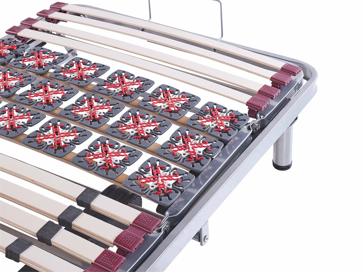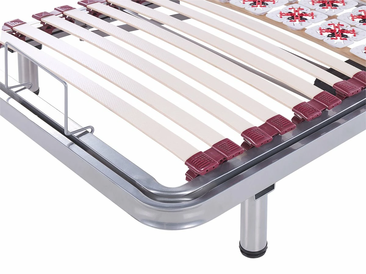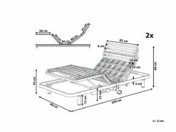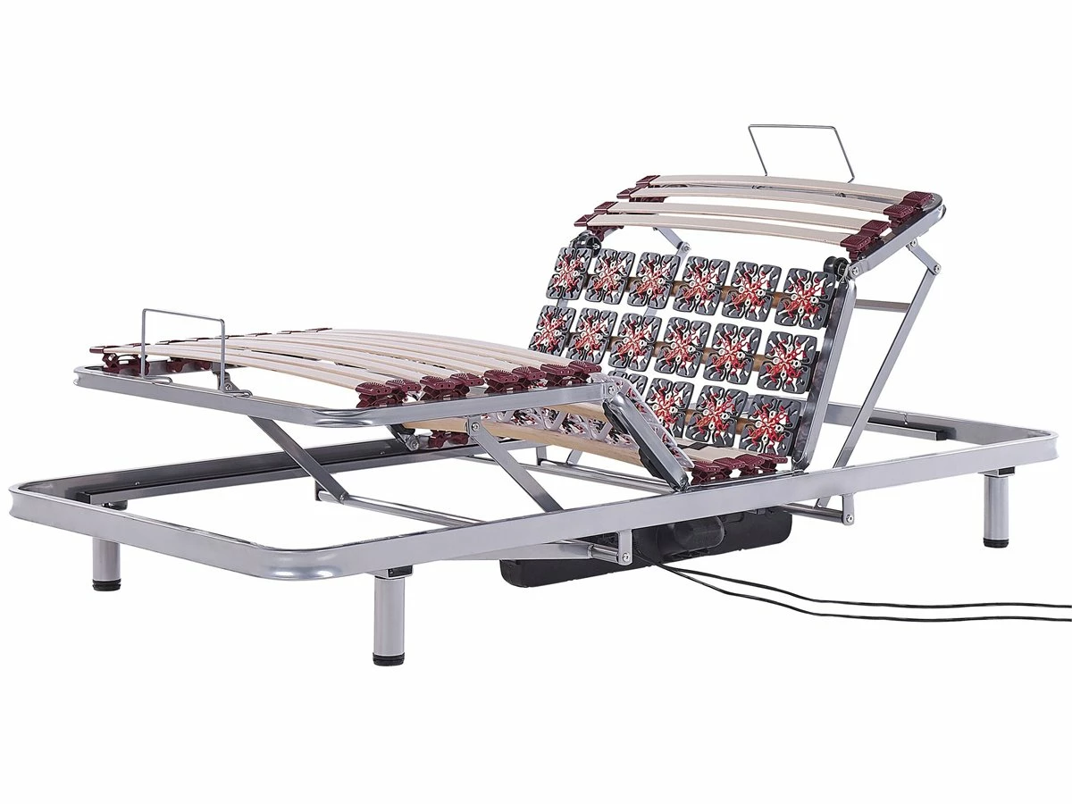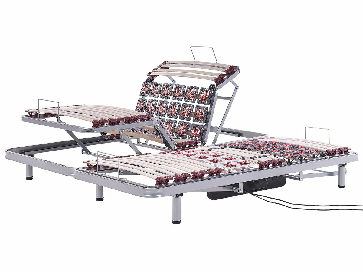 Juego de somieres. Mejora la calidad de tu descanso con este conjunto de 2 somieres articulados. Está fabricado a partir de metal fuerte y resistente. Las láminas flexibles de madera de abedul permanecen firmes gracias a los fijadores de goma. La estructura permite un ajuste eléctrico regulable con mando a distancia. Se adapta a todo tipo de colchones. Detalles: Tipo de Producto: Somier ajustable eléctricamente Color: Gris Tonalidad: Gris oscuro Tipo de material: Acero Material principal: Acero Material adicional: Madera de abedul Tipo de ajuste: Eléctrico Número de patas: 4 Número de listones: 26 Dimensiones: Ancho: 180 cm Longitud: 200 cm Altura: 25-68 cm Superficie para dormir: 180×200 cm Peso: 74 kg Capacidad de peso: 360 kg La oferta incluye: 2 x Somier (26 listones Ventajas: Distribución uniforme del peso corporal, Estructura duradera y sólida, Durable y robusto, Fabricación sólida y precisa, Ajustable a través de control remoto, Patas con tapas anti-deslizantes Información de montaje: No requiere montaje Consejos de mantenimiento: Acero: Limpie el somier con un paño húmedo.