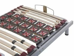 Juego de somieres. Mejora la calidad de tu descanso con este conjunto de 2 somieres articulados. Está fabricado a partir de metal fuerte y resistente. Las láminas flexibles de madera de abedul permanecen firmes gracias a los fijadores de goma. La estructura permite un ajuste manual. Se adapta a todo tipo de colchones. Detalles: Tipo de Producto: Somier ajustable Color: Gris Tonalidad: Gris oscuro Tipo de material: Acero Material principal: Acero Material adicional: Madera de abedul Tipo de ajuste: Manual Número de patas: 4 Número de listones: 26 Dimensiones: Ancho: 180 cm Longitud: 200 cm Altura: 25/56 cm Superficie para dormir: 180×200 cm Peso: 34 kg Capacidad de peso: 360 kg La oferta incluye: 2 x Somier (26 listones Ventajas: Distribución uniforme del peso corporal, Estructura duradera y sólida, Durable y robusto, Fabricación sólida y precisa, Patas con tapas anti-deslizantes Información de montaje: No requiere montaje. 20-40 min. Consejos de mantenimiento: Acero: Limpie el somier con un paño húmedo.