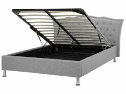 Cama de matrimonio con estilo elegante, tapizada en piel sintético. Es una excelente opción para amueblar su dormitorio o su cuarto de huéspedes.