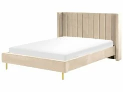 Cama de matrimonio con estilo elegante, tapizada en piel sintético. Es una excelente opción para amueblar su dormitorio o su cuarto de huéspedes.