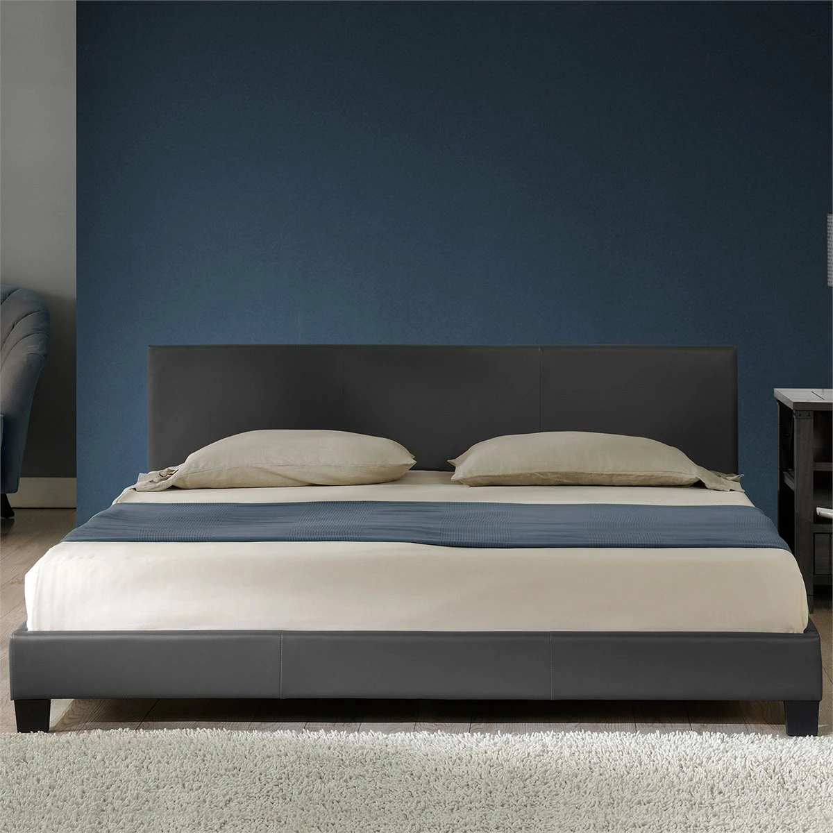 Cama de matrimonio con estilo elegante, tapizada en piel sintético. Es una excelente opción para amueblar su dormitorio o su cuarto de huéspedes.