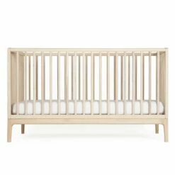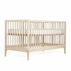 ¡Os ofrecemos 8 posibilidades de cunas con la colección KERA! Una colección duradera y ecológica que se adapta a vuestro gusto ofreciendo 4 patas diferentes y dos bases distintas. Esta combinación se compone de la base Round con acabados redondeados y el pie Pure inclinado de estilo contemporáneo. El diseño de KERA es elegante, sencillo y minimalista. Los detalles propios de la construcción, como los tornillos, son invisibles. En el diseño de esta cuna, se ha prestado especial atención a las necesidades del bebé y de los padres. El ajuste de altura de la base en 2 niveles es ergonómico. Con su gran tamaño (colchón de 70×140 cm y su barandilla de seguridad en forma de onda, KERA puede utilizarse hasta los 6 años. Gracias a su kit de transformación, la cama KERA puede transformarse en un sofá, convirtiéndose en el lugar ideal para contarle sus cuentos favoritos. La cama KERA es de madera maciza de fresno aceitada. Combina perfectamente con la colección NADO. El aceite aplicado, contiene pigmentos blancos naturales que conservan el color y la hermosa veta de la madera de forma brillante. La camaKERA ha sido diseñada y desarrollada en Alemania por el estudio Ellenberger y se fabrica en Europa.