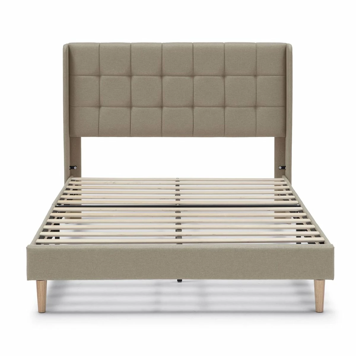 · Estructura de cama tapizada modelo Esther con somier de láminas y cabecero tapizado con tela 100% poliéster.