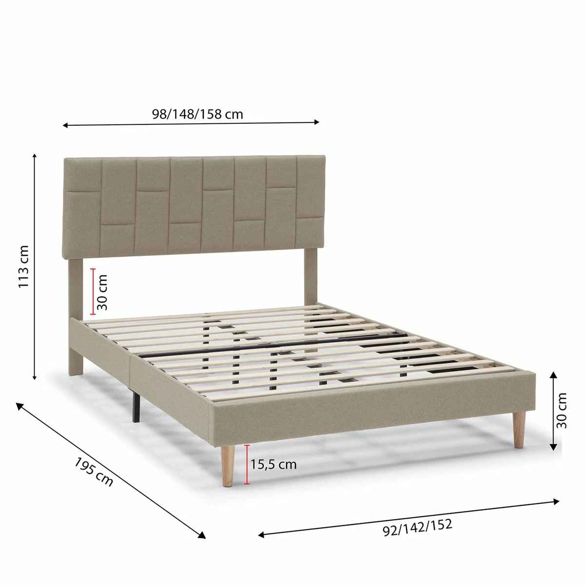 · Estructura de cama tapizada modelo Sorni con somier de láminas y cabecero tapizado con tela 100% poliéster.