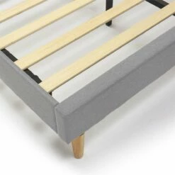 · Estructura de cama tapizada modelo Sorni con somier de láminas y cabecero tapizado con tela 100% poliéster.