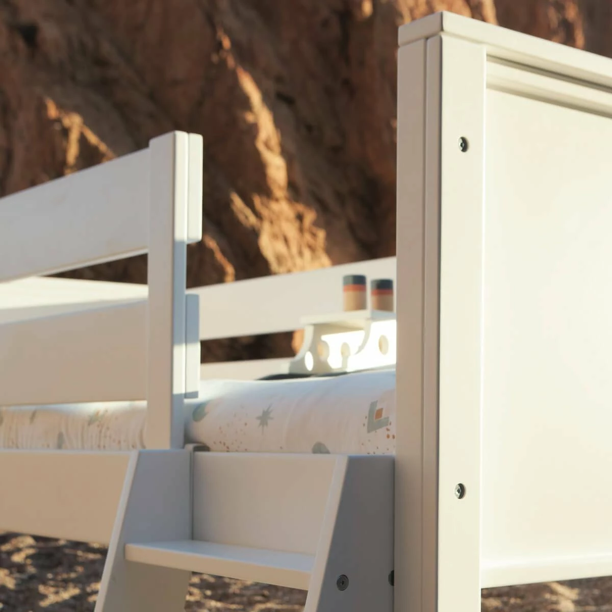 Litera con protección de seguridad en la cama superior. La litera es perfecta para optimizar el espacio tan importante en la habitación infantil, tus peques necesitan su zona de juegos, estudio y diversión. Además es ideal para cuando esperamos invitados.
