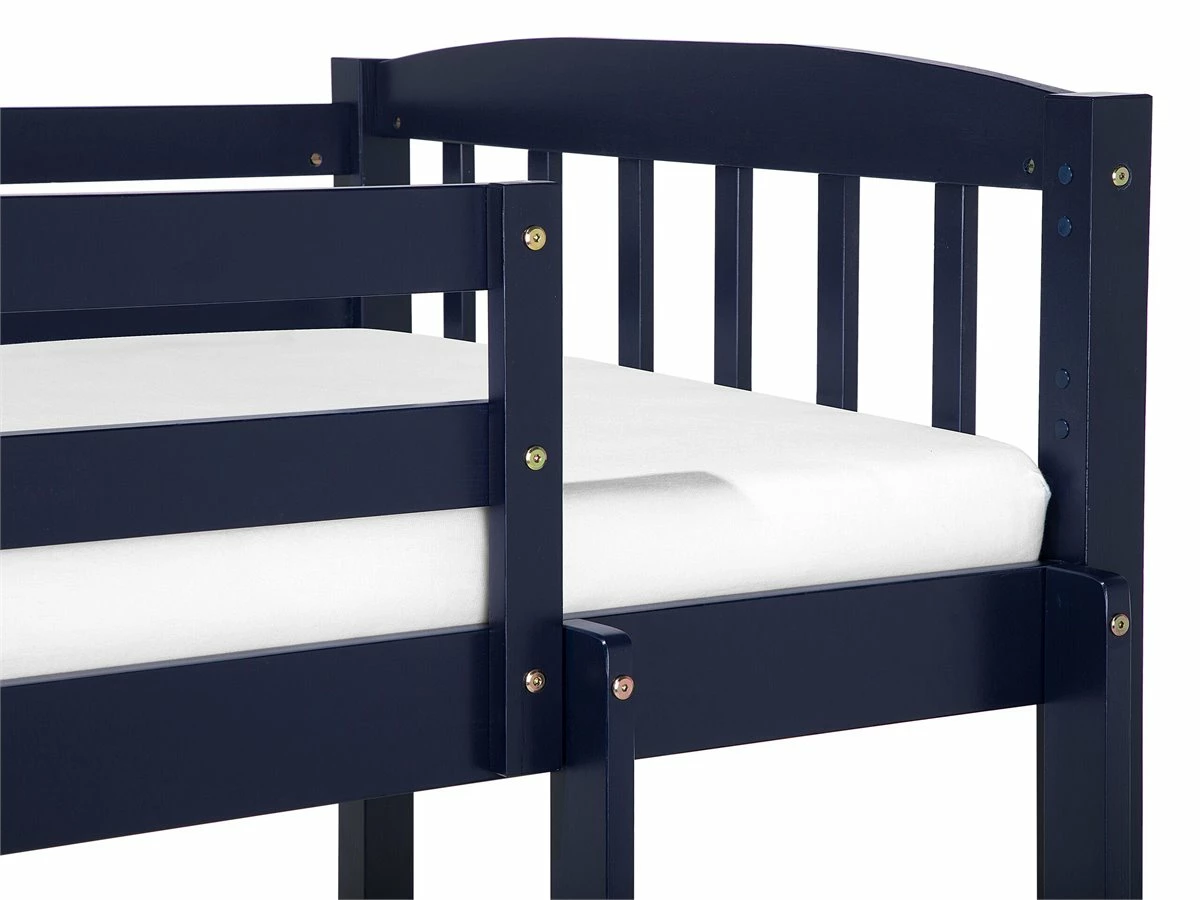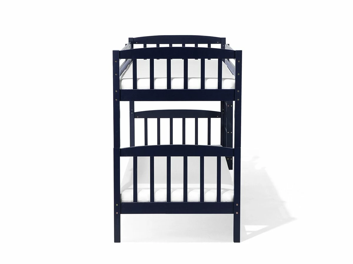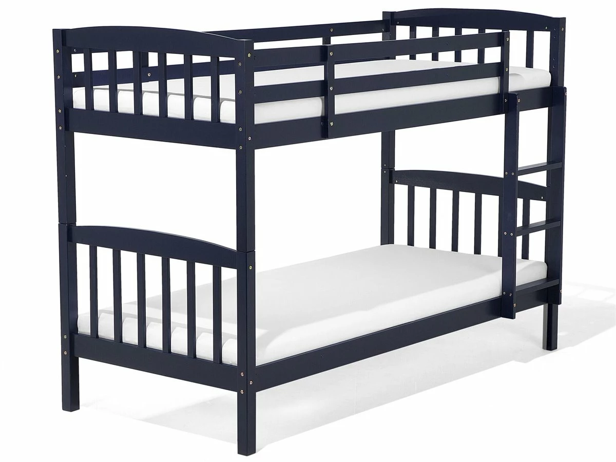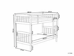 Cama para habitación infantil. Esta litera funcional de estilo moderno es ideal para cualquier habitación infantil. Está fabricada a partir de madera de pino de alta calidad. Los listones verticales en el cabecero y el pie de cama ofrecen estabilidad y seguridad. La altura recomendada para el colchón de la litera superior es inferior a 13 cm. Detalles: Tipo de Producto: Cama para niños Estilo: Moderno Color: Blanco Tipo de material: Madera maciza Material principal: Madera de pino Material adicional: Madera contrachapada Parte posterior tapizada: No Dimensiones: Ancho: 97 cm Longitud: 208 cm Altura: 150 cm Superficie para dormir: 90×200 cm Peso: 45 kg Capacidad de peso: 150 kg La oferta incluye: 1 x Estructura de cama, 2 x Somier (15 listones, 1 x Escalera, No incluye: cajones, No incluye: colchón y ropa de cama Ventajas: La base de listones que absorbe los golpes proporciona un soporte perfecto, Estilo escandinavo minimalista, Construcción muy estable, Alta calidad, Ocupa poco espacio Información de montaje: Requiere montaje completo. Más de 60 min. Información adicional: La madera es un material natural, lo que permite conservar su estructura natural y el carácter único de la superficie también después de pintarlo Consejos de mantenimiento: Madera de pino: 1.Seque inmediatamente después de limpiar. para evitar que se acumule agua en los muebles 2.Limpie con un limpiador y un paño suave en la dirección del grano 3.Los muebles con acabado de aceite deben engrasarse una vez al año