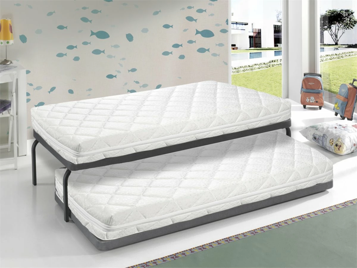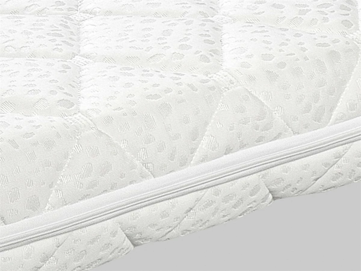 Espuma de última generación con microperforación que garantiza una buena ventilación eliminando el calor y la humedad. La espuma tiene la densidad suficiente para adaptarse al cuerpo del niño y eliminar las zonas de presión reduciendo la inquietud nocturna. Reducie los canales de ventilación de CO2. Transpirable.