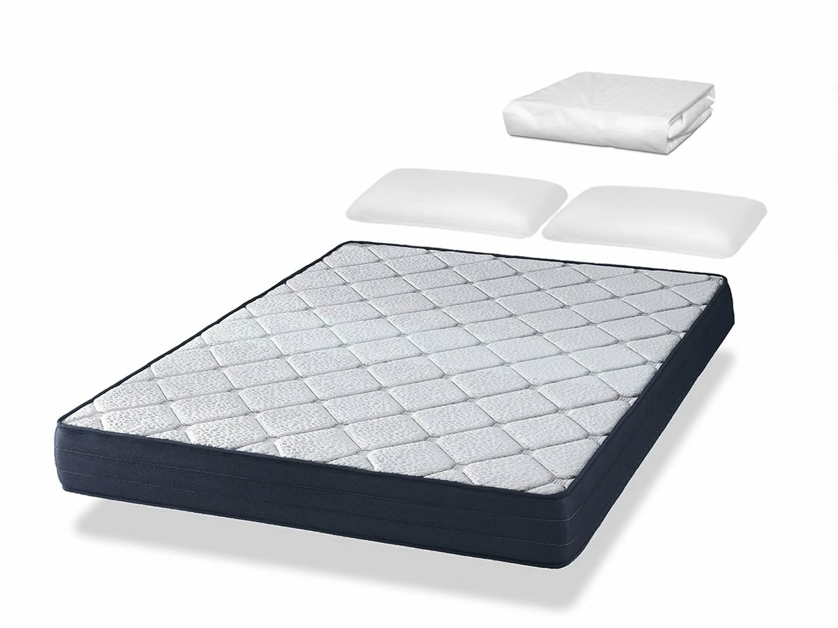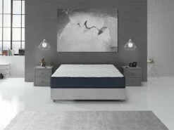 Con acabados en tonos azules y acolchado cuadrado en tejido color blanco, hacen que este colchón sea moderno y actual.Doble cosido reforzado
