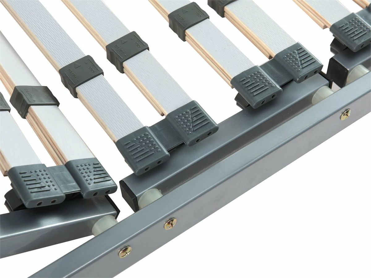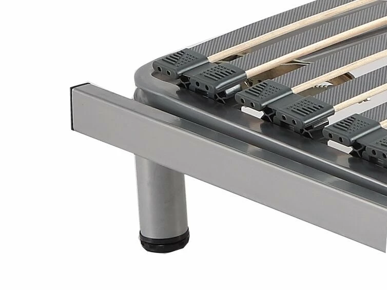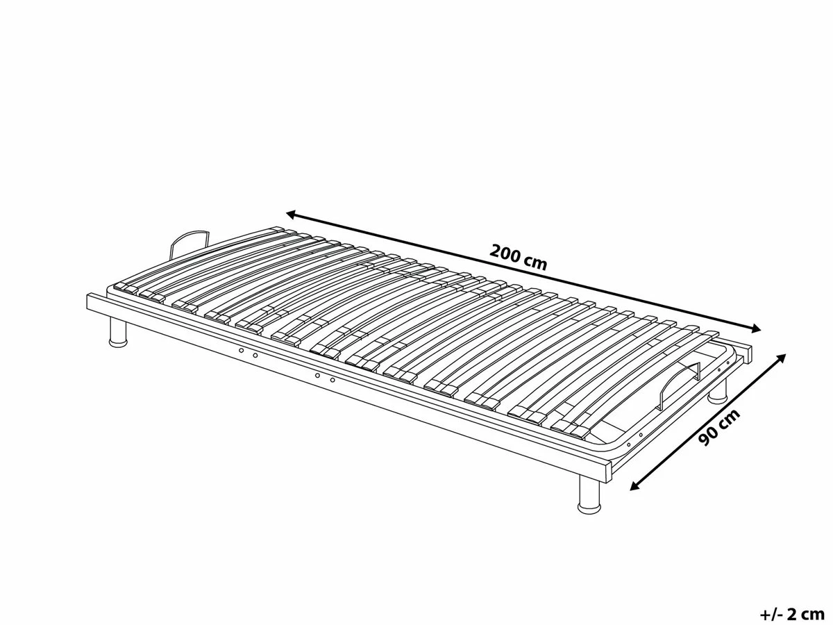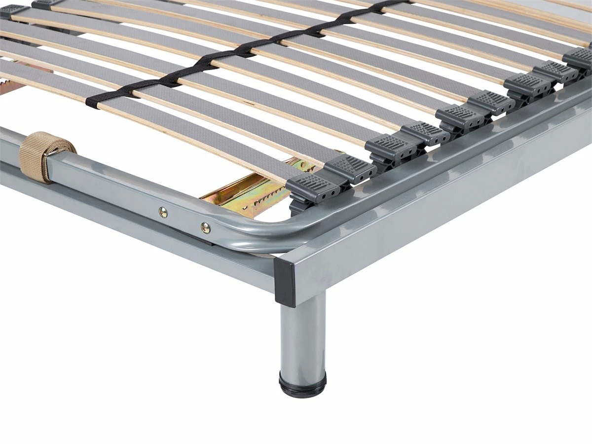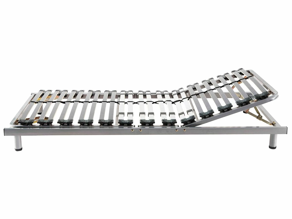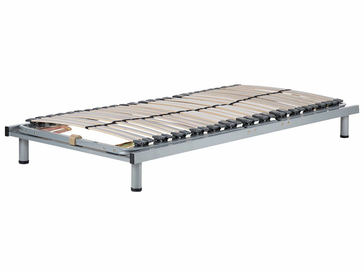 Somier ajustable manualmente. Mejora la calidad de tu descanso con este somier articulado. Está fabricado a partir de metal fuerte y resistente. Las láminas flexibles de madera de abedul permanecen firmes gracias a los fijadores de caucho sintético. La estructura permite 4 posiciones distintas de ajuste manual. Se adapta a todo tipo de colchones. Detalles: Tipo de Producto: Somier ajustable Color: Plateado Tipo de material: Acero Material principal: Acero Material adicional: Madera de abedul Tipo de ajuste: Manual Número de patas: 4 Número de listones: 26 Dimensiones: Ancho: 90 cm Longitud: 200 cm Altura: 25 cm Superficie para dormir: 90×200 cm Peso: 30 kg Capacidad de peso: 150 kg La oferta incluye: 1 x Somier Ventajas: Distribución uniforme del peso corporal, Óptima circulacion del aire , Estructura duradera y sólida, Gran durabilidad, Patas con tapas anti-deslizantes Información de montaje: Requiere montaje parcial. 20-40 min. Consejos de mantenimiento: Acero: Limpie el somier con un paño húmedo.
