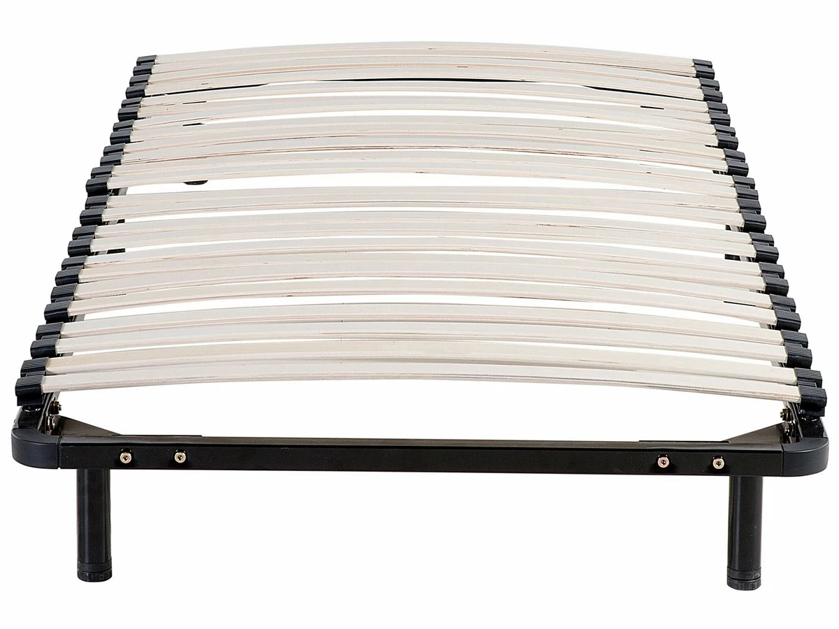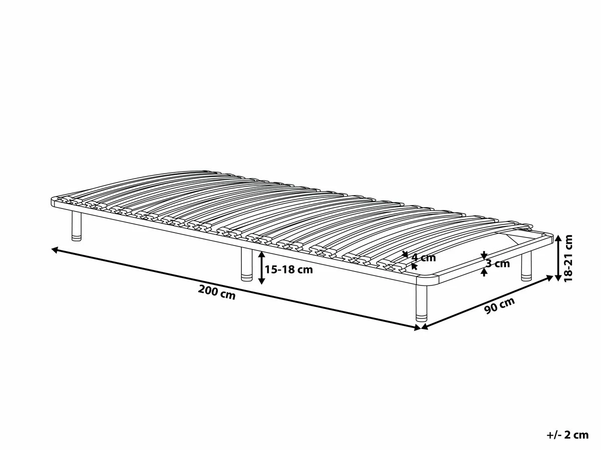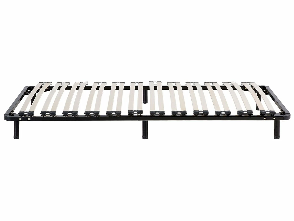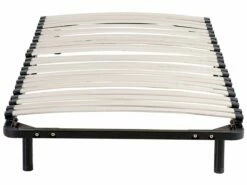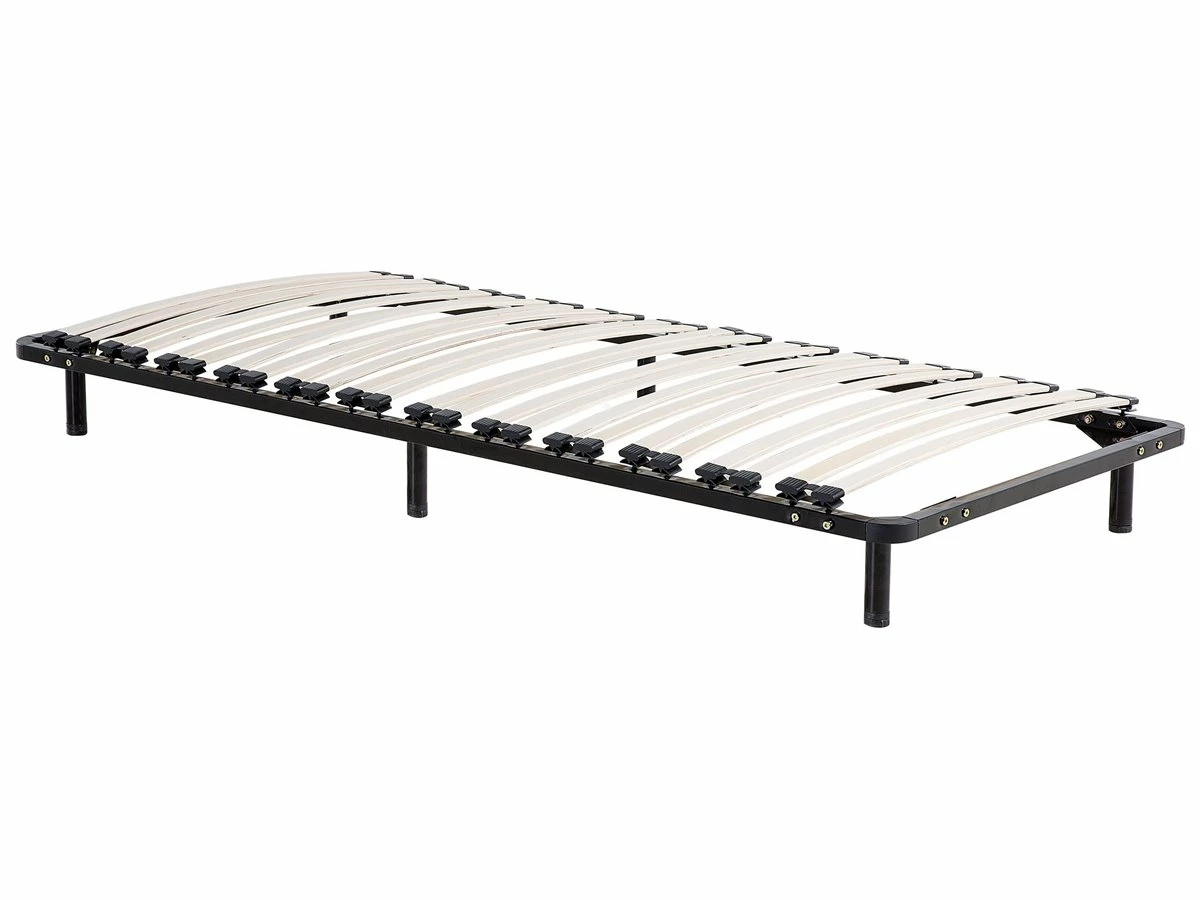 Somier con patas. Mejora la calidad de tu descanso con este somier de listones. Está fabricado a partir de metal fuerte y resistente. Las láminas de madera de caucho ofrecen estabilidad al colchón. Detalles: Tipo de Producto: Somier independiente Color: Negro Tipo de material: Acero Material principal: Acero Material adicional: Madera de álamo Número de patas: 4 Número de listones: 24 Dimensiones: Ancho: 90 cm Longitud: 200 cm Altura: 18-21 cm Superficie para dormir: 90×200 cm Peso: 15 kg Capacidad de peso: 150 kg La oferta incluye: 1 x Somier Ventajas: Distribución uniforme del peso corporal, Apto para cualquier tipo de colchón, Materiales de la más alta calidad, Soporta de forma óptima la espina vertebral, Su contrucción permite mantener la higiene Información de montaje: Requiere montaje completo. 20-40 min. Consejos de mantenimiento: Acero: Limpie el somier con un paño húmedo.