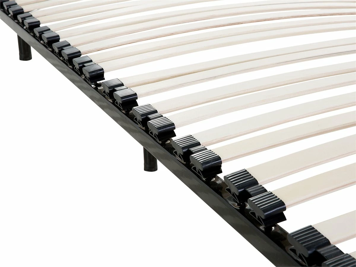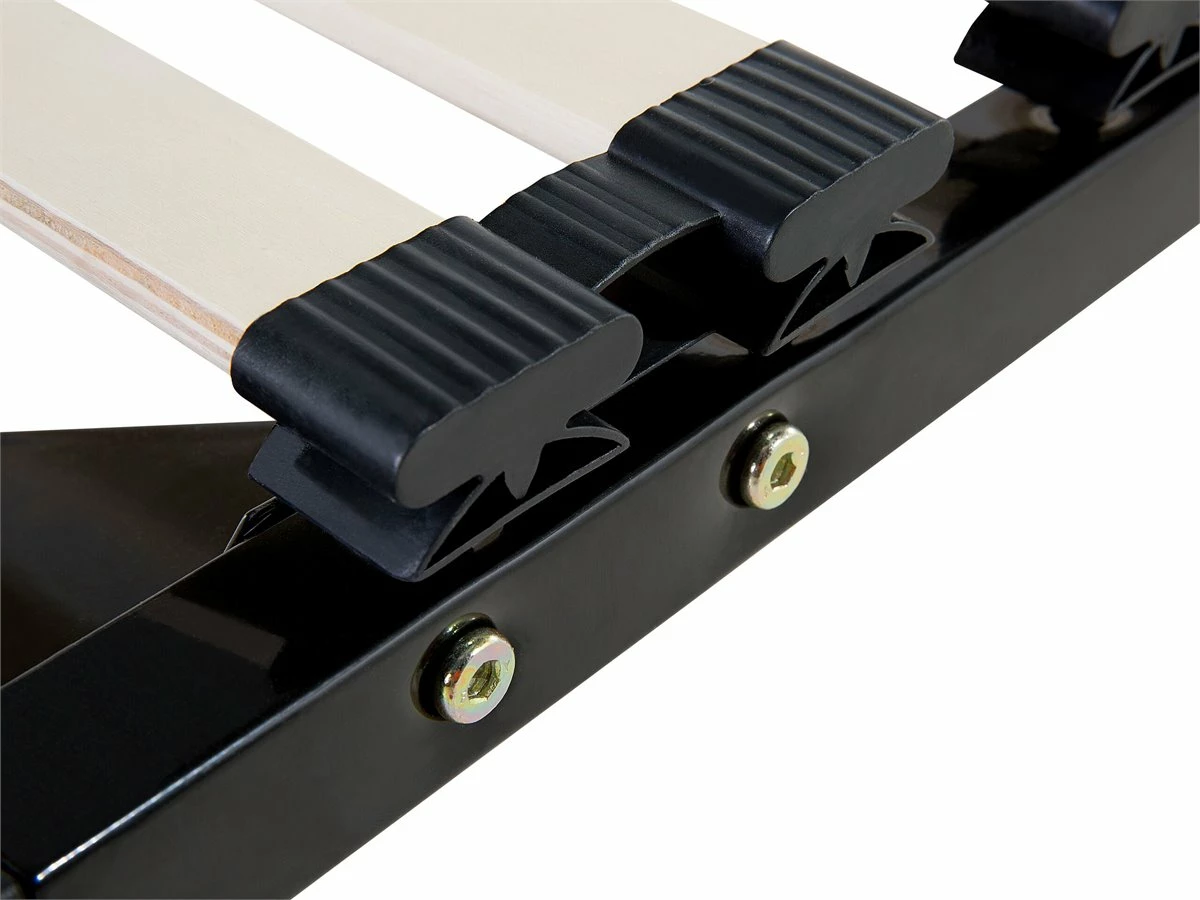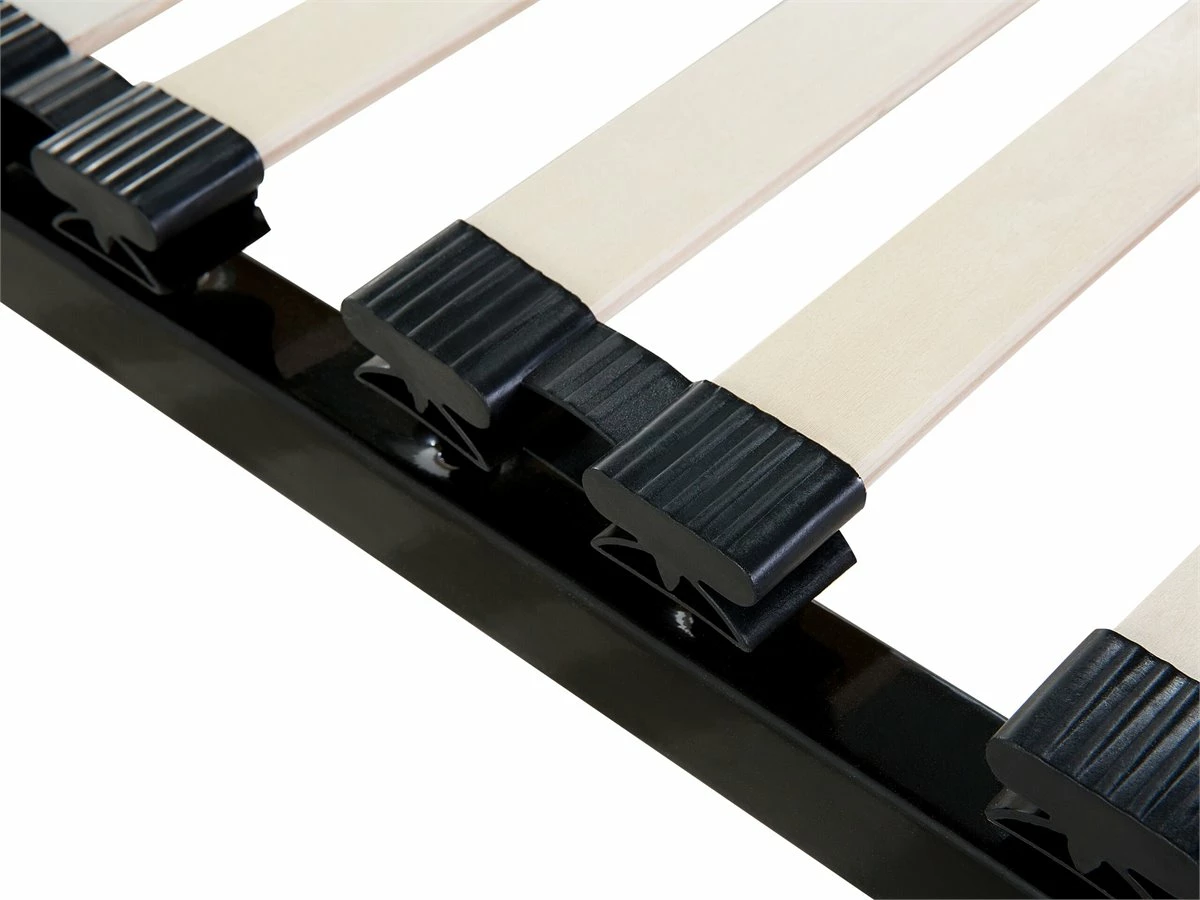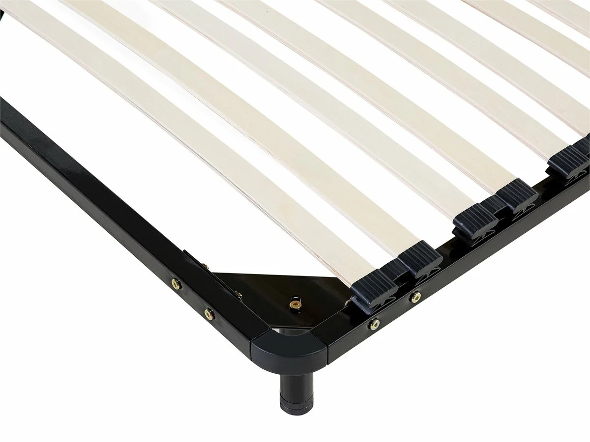 Somier con patas. Mejora la calidad de tu descanso con este somier de listones. Está fabricado a partir de metal fuerte y resistente. Las láminas de madera de caucho ofrecen estabilidad al colchón. Detalles: Tipo de Producto: Somier independiente Color: Negro Tipo de material: Acero Material principal: Acero Material adicional: Madera de álamo Número de patas: 4 Número de listones: 24 Dimensiones: Ancho: 90 cm Longitud: 200 cm Altura: 18-21 cm Superficie para dormir: 90×200 cm Peso: 15 kg Capacidad de peso: 150 kg La oferta incluye: 1 x Somier Ventajas: Distribución uniforme del peso corporal, Apto para cualquier tipo de colchón, Materiales de la más alta calidad, Soporta de forma óptima la espina vertebral, Su contrucción permite mantener la higiene Información de montaje: Requiere montaje completo. 20-40 min. Consejos de mantenimiento: Acero: Limpie el somier con un paño húmedo.