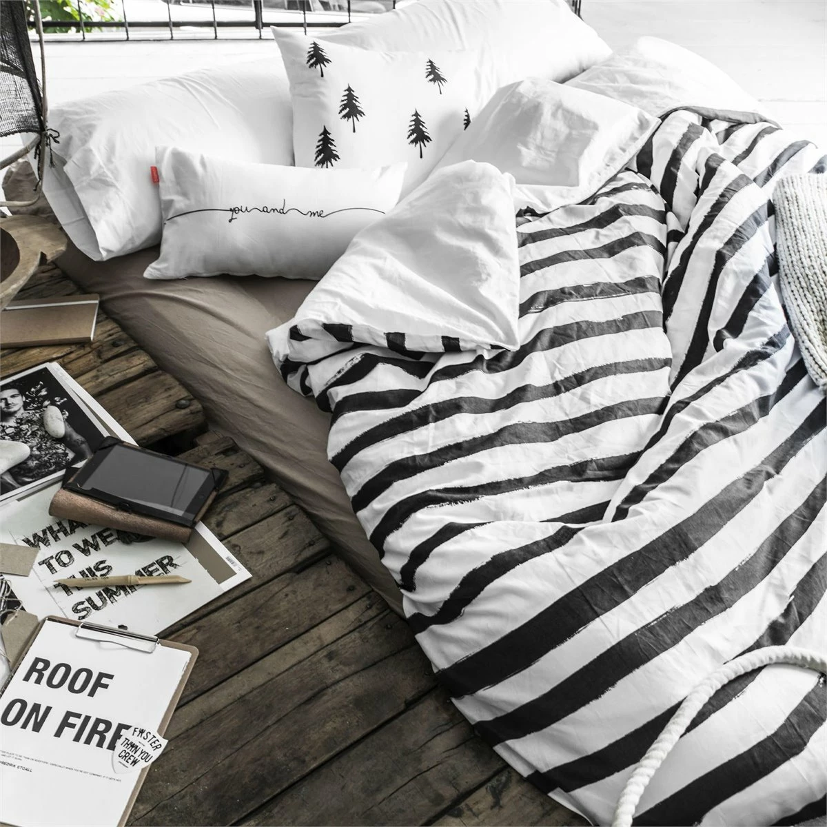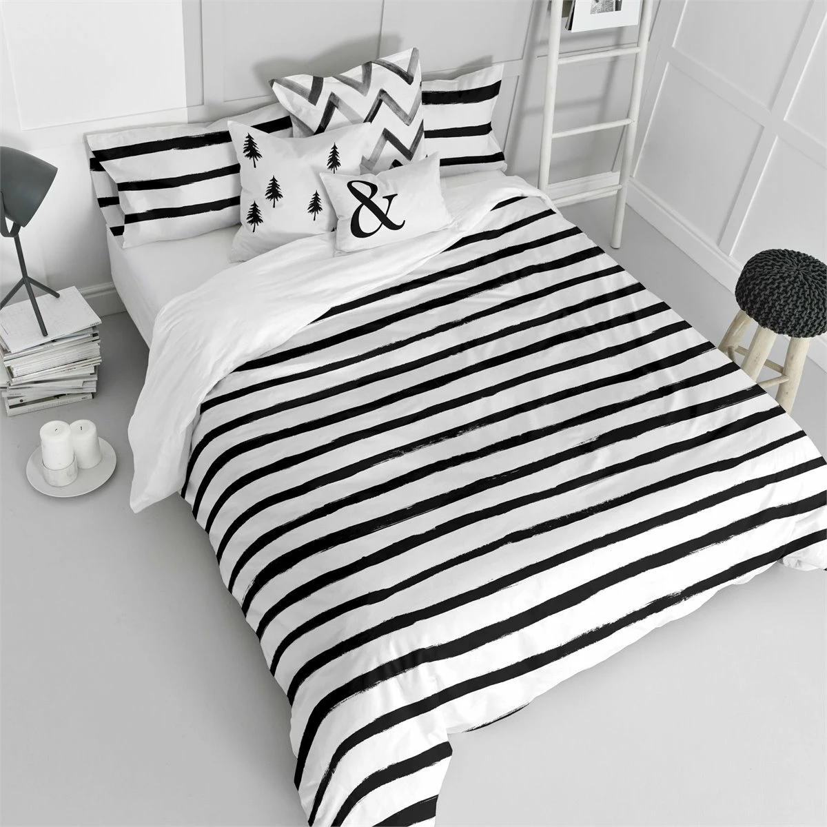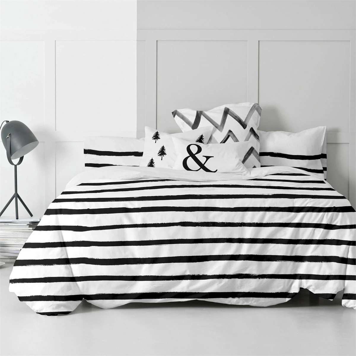 Dale a tu dormitorio un aspecto fresco, limpio e indiscutiblemente elegante con la funda nórdica Stripe. Las bandas negras de acuarela pintadas a mano le dan un toque de juventud a este diseño clásico de la colección Blanc.Siente el tacto ligero y suave del algodón 100% de 150 hilos. Esta funda nórdica está disponible en una variedad de tamaños y se puede mezclar y combinar con otros productos de la misma colección.Funda de almohada y bajera no incluidas.Disponible en las siguientes tallas: * 140×200 * 155×220 [Cama 80/90] * 180×220 [Cama 105] * 200×200 * 220×220 [Cama 135/140] * 240×220 [Cama 150/160] * 260×220 [Cama 180/200] * 260×240 [Cama 180/200]