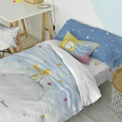 El suave degradado que va del blanco al azul que se ve en el juego de funda nórdica Univers de la colección Le Petit Price hará que tu hijo se sienta como si estuviera suspendido en el cielo, volando hacia nuevos planetas y aventuras fantásticas. No te preocupes, ¡están en buena compañía!Este juego de funda nórdica de algodón 100% tiene un reverso blanco liso que añade un aspecto etéreo y puro.Disponible en las siguientes tallas: * 140×200 (incluye funda de almohada 63×63. * 155×220 [Cama 80/90](incluye funda de almohada 45×110. * 180×220 [Cama 105] (incluye funda de almohada 45×125.